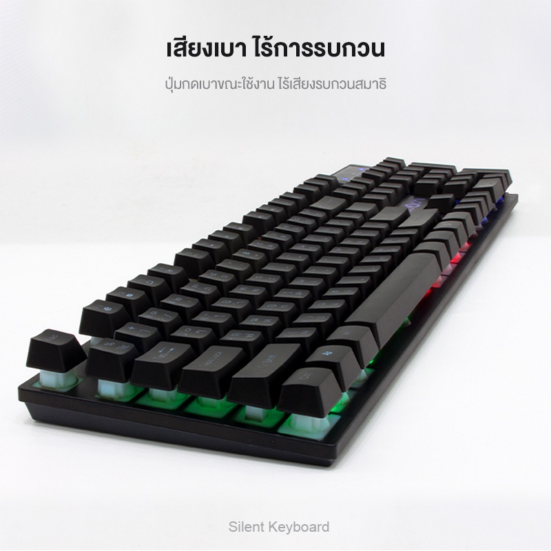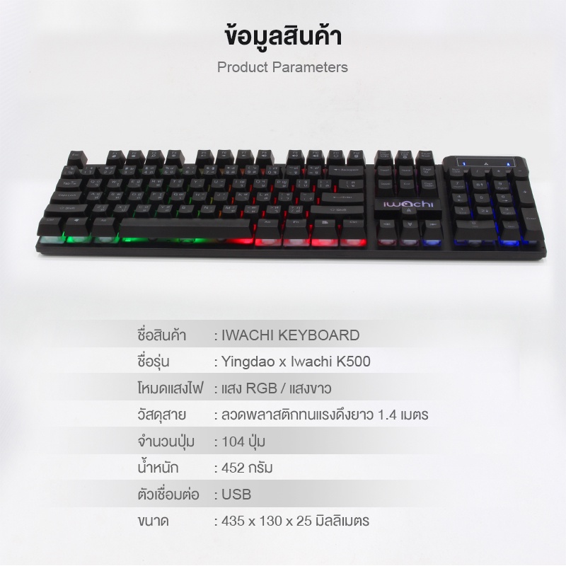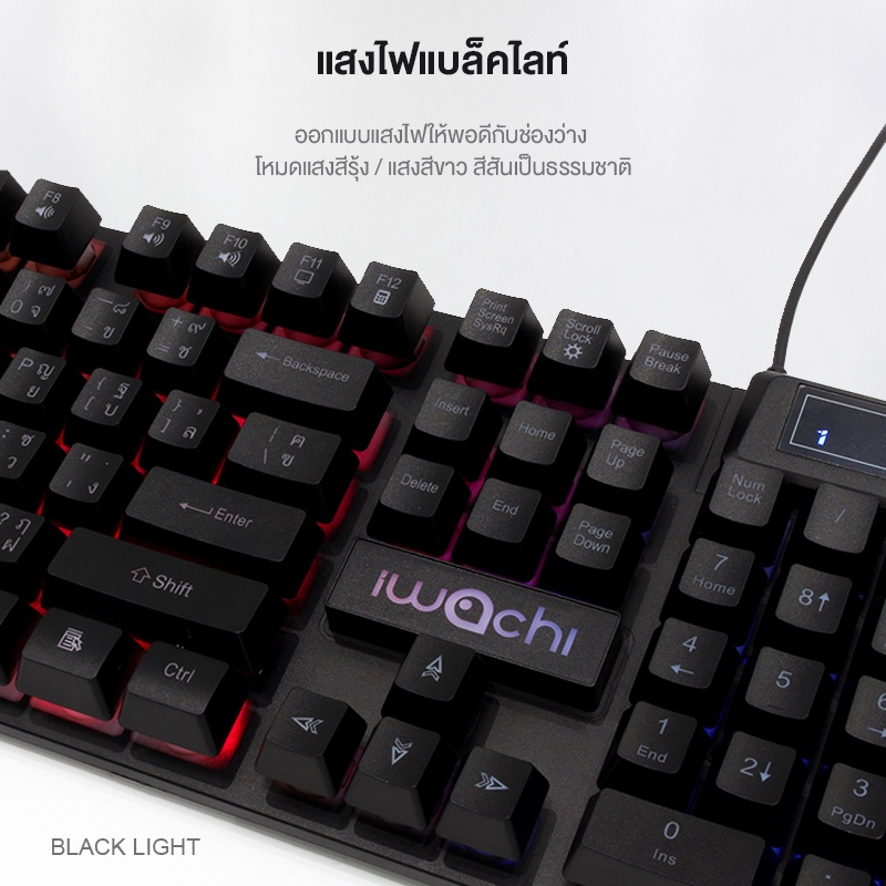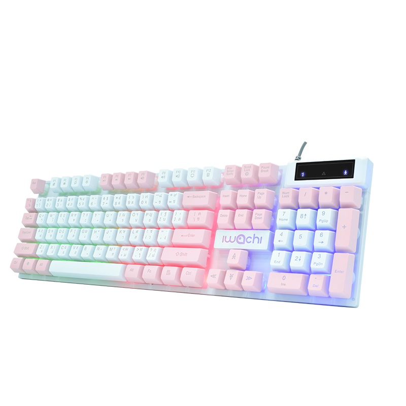 คีย์บอร์ด IWACHI คีย์บอร์ดไฟ RGB แสงไฟสี/แสงไ ฟขาว คีย์บอร์ดเกมมิ่งมีสาย แป้นพิมพ์ภาษาไทย เสียงเบา เซตคีย์บอร์ด+เมาส์