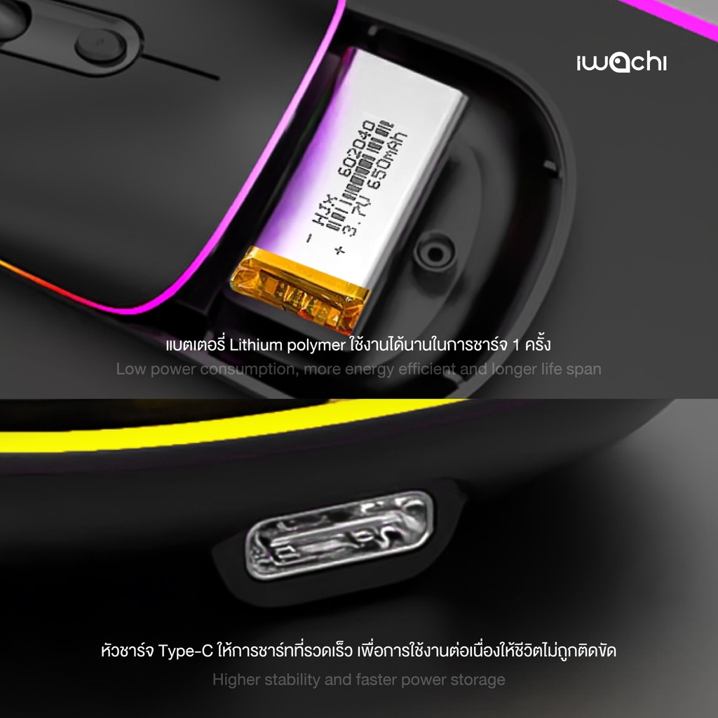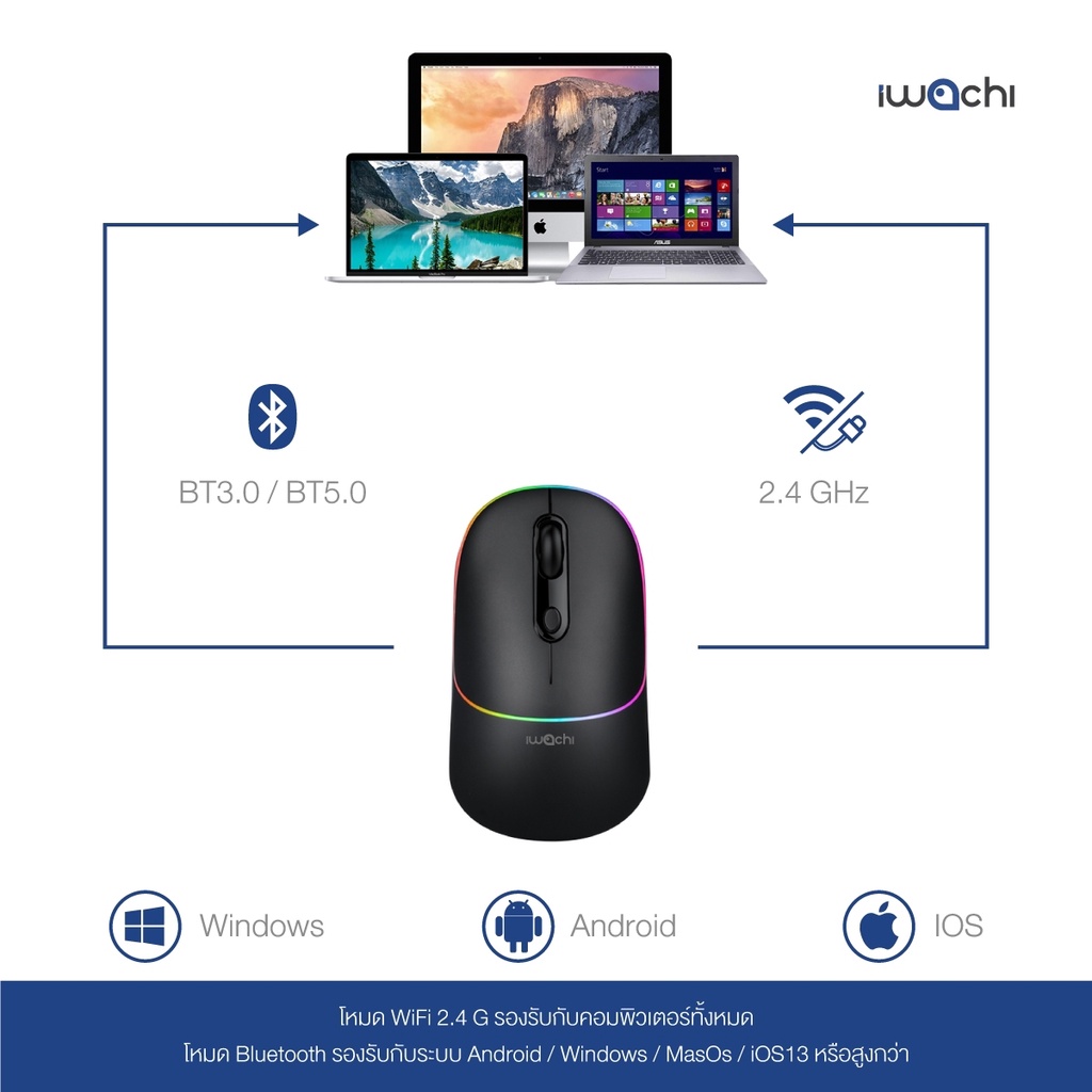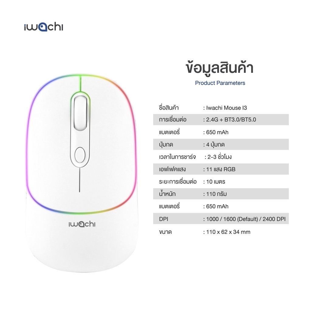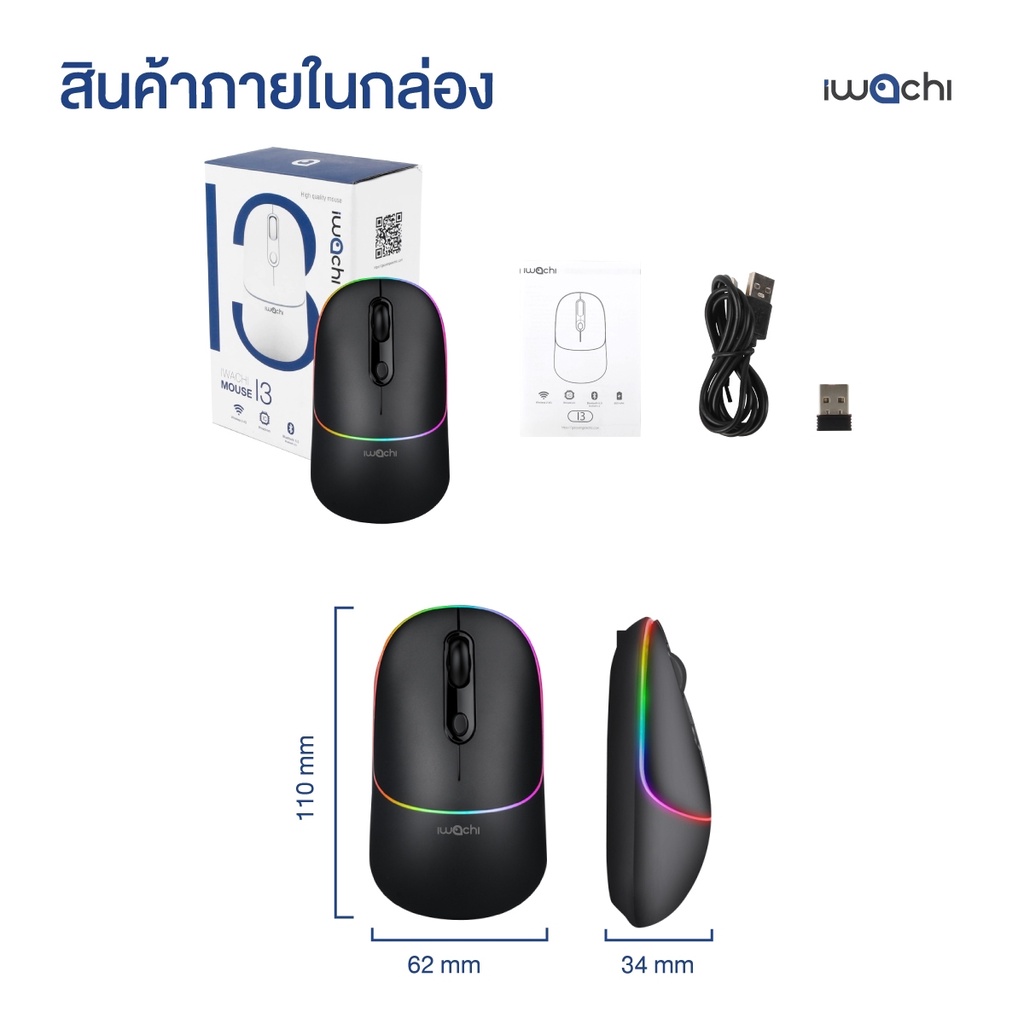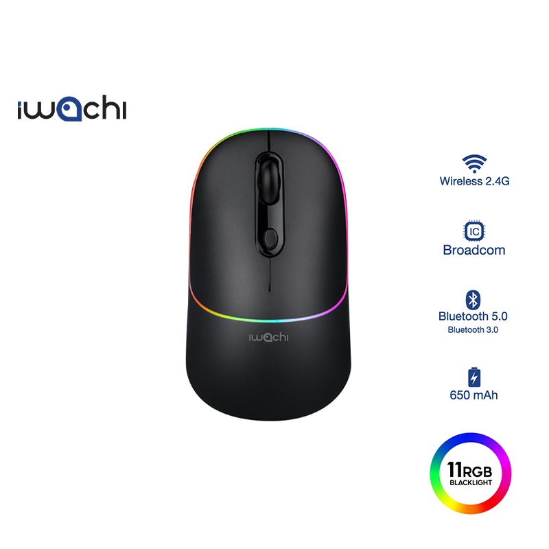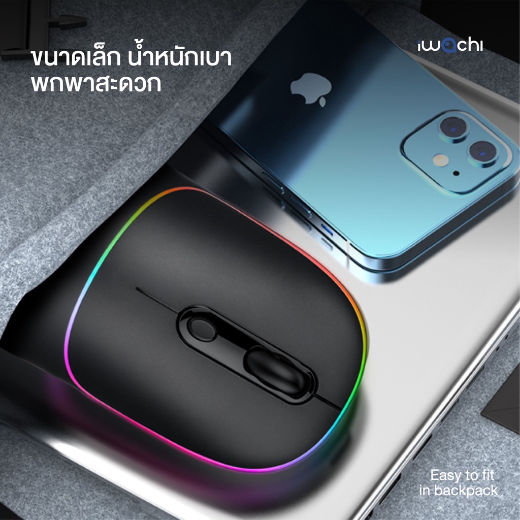 เม้าส์ไร้สาย IWACHI I3 Wireless mouse rechargable bluetooth mouse รองรับ 2.4G/BT5.0 แบตเตอรี่ในตัว 650mAh