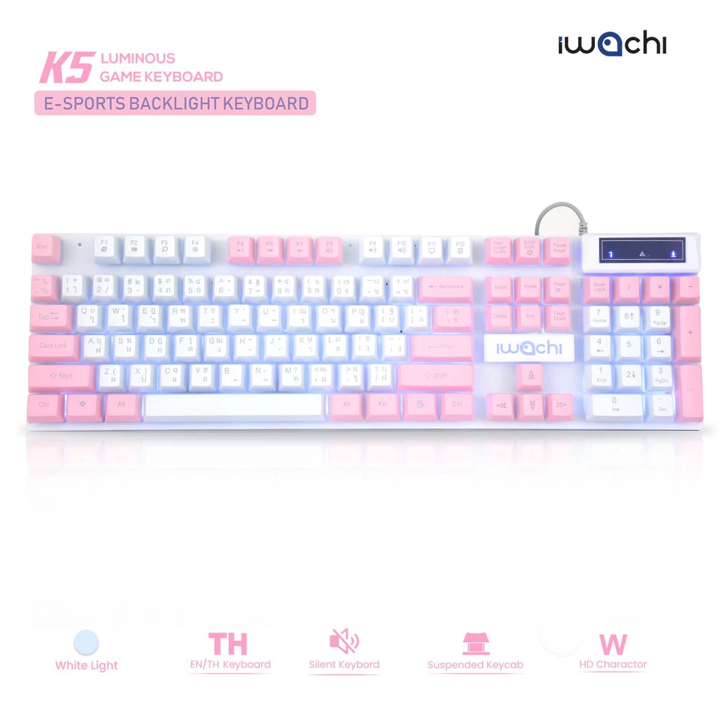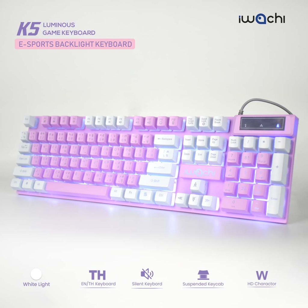 IWACHI K5 คีย์บอร์ดไฟ RGB แสงไฟสี/แสงไฟขาว คีย์บอร์ดเกมมิ่งมีสาย แป้นพิมพ์ภาษาไทย เสียงเบา เซตคีย์บอร์ด+เมาส์