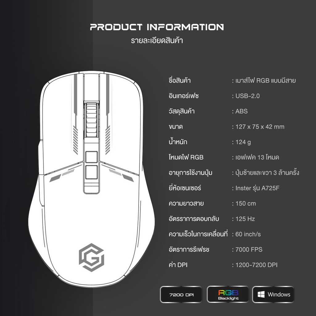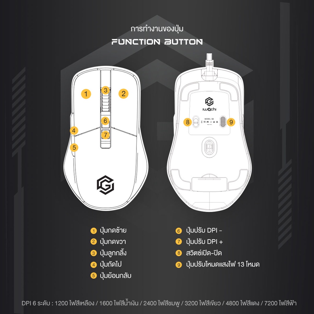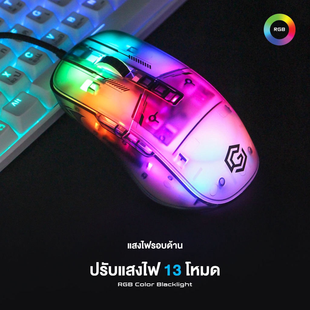 เมาส์ IWACHI G3 เมาส์ไฟ RGB แบบมีสาย เมาส์เกมมิ่ง ปรับไฟได้13โหมด ปรับDPI ได้สูงสุด 7200DPI