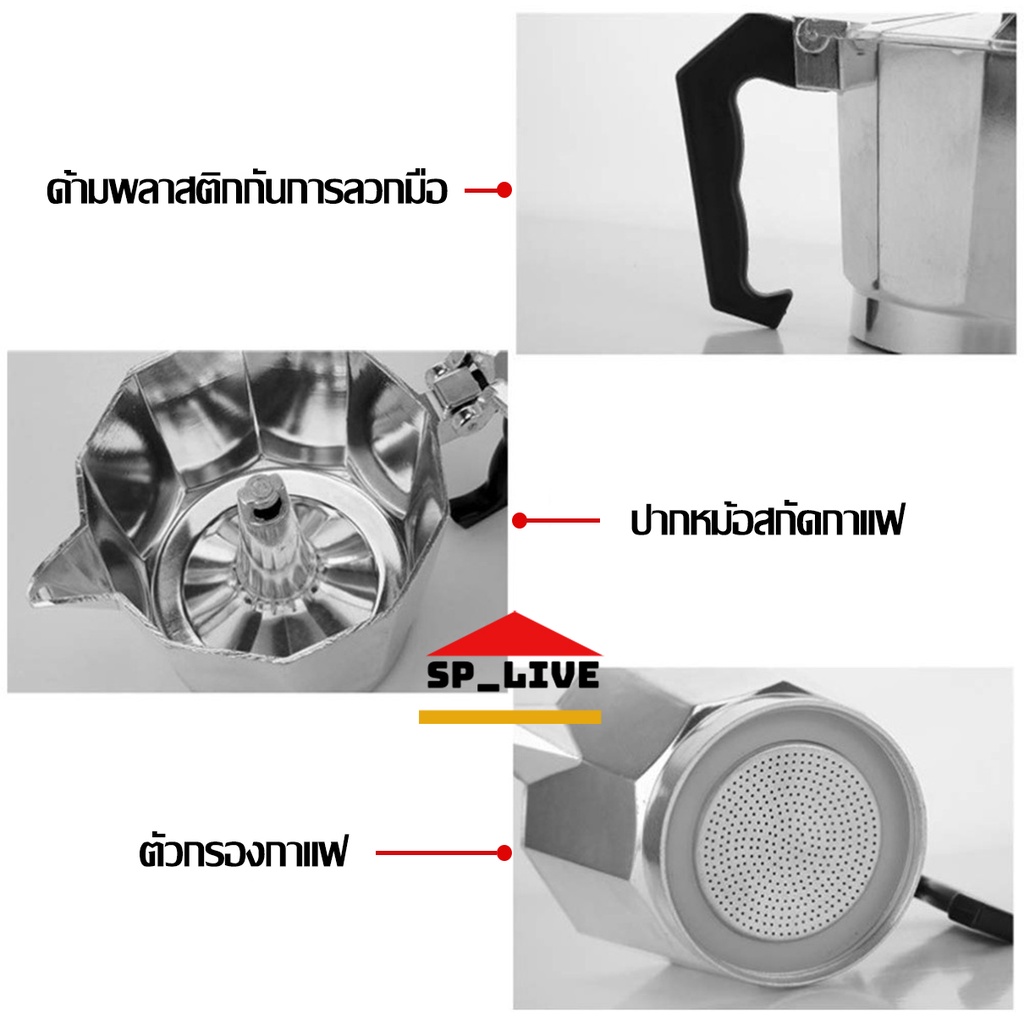 [โค้ด 6LLB47 ลด15% สูงสุด 30 ] Moka Pot หม้อต้มกาแฟ กาต้มกาแฟ 1 2 3 6 9 12 cup
