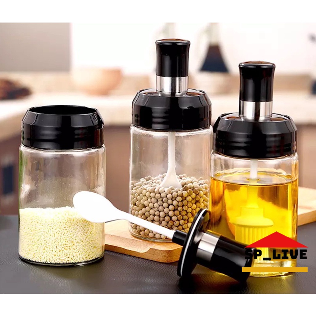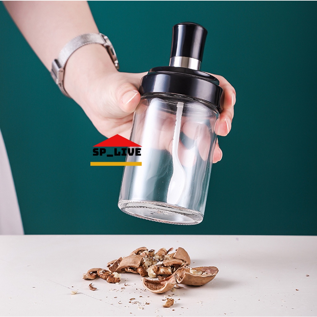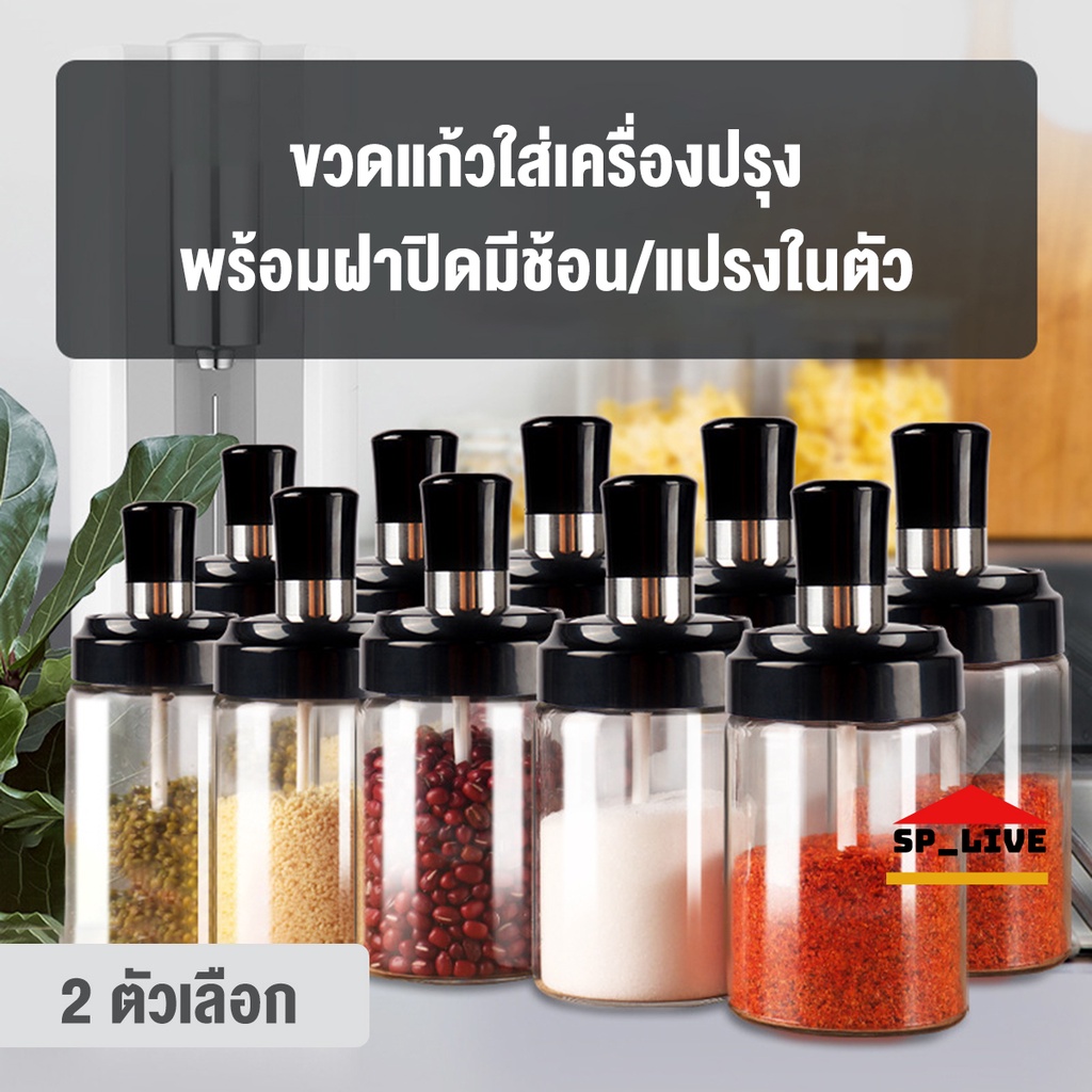 ขวดใส่เครื่องปรุงอาหาร ขวดเครื่องปรุง ขวดแก้ว ขนาด 250ml พร้อมช้อนตักในตัว
