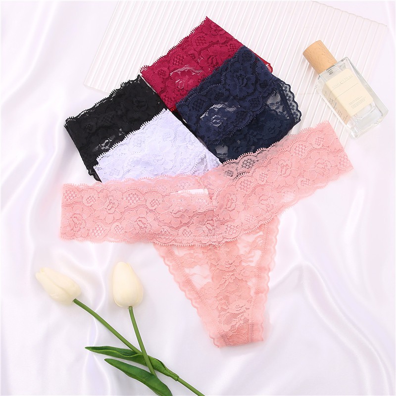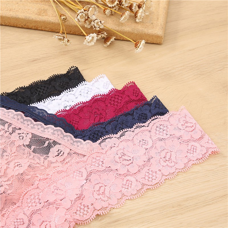 กางเกงชั้นใน ผ้าลูกไม้ ลายดอกไม้ เซ็กซี่ สีพื้น สําหรับผู้หญิง