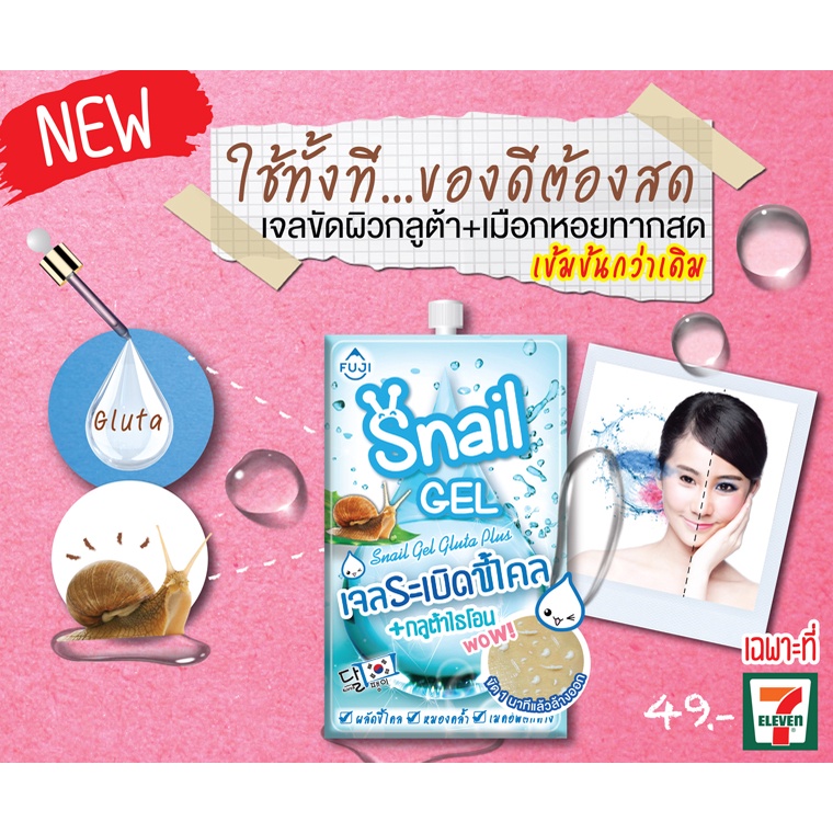 ฟูจิ สเนล เจล สูตรใหม่10 ก. (กล่อง 6 ซอง) FUJI SNAIL GEL WITH GLUTA PLUS 10 G. เจลหอยทาก