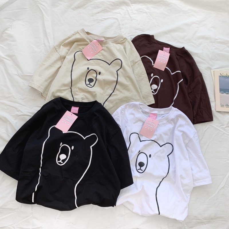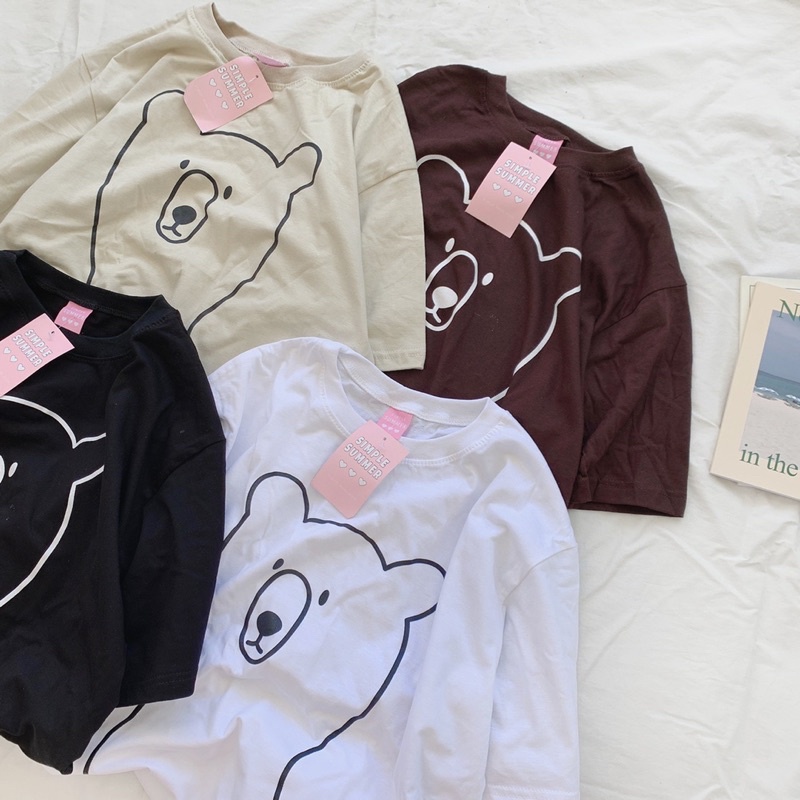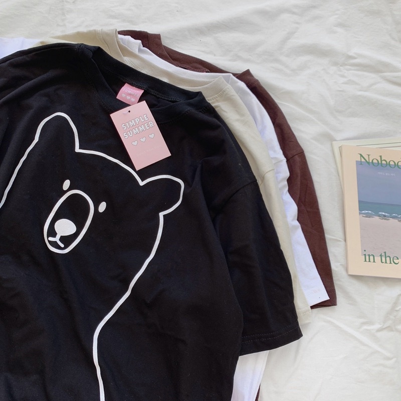 พร้อมส่ง ผ้าคอตตอน🐻เสื้อยืด oversize ปักลายสไตล์มินิมอล สกรีนลายหมีเส้น