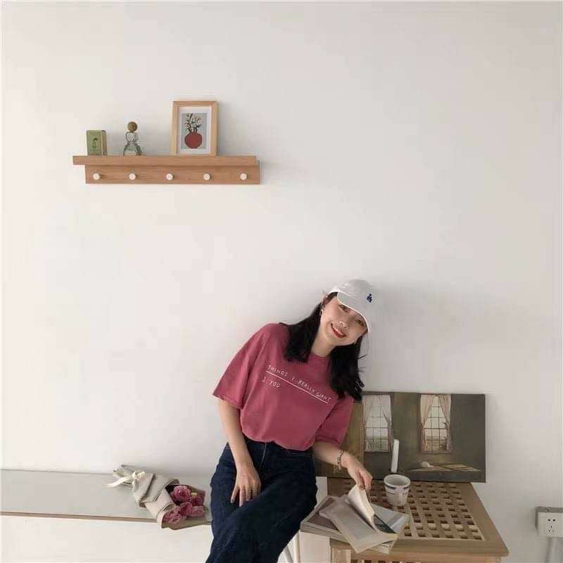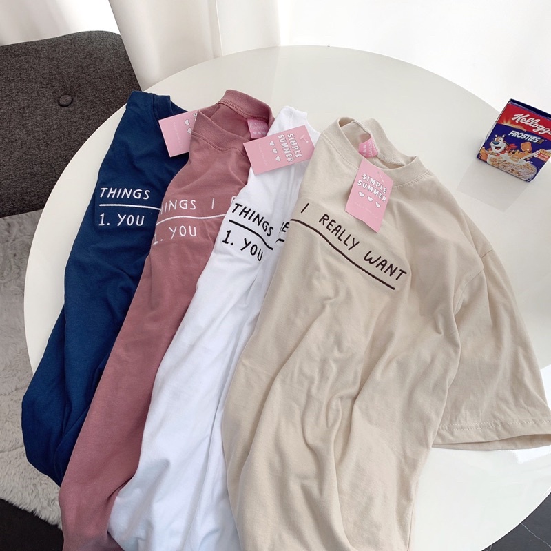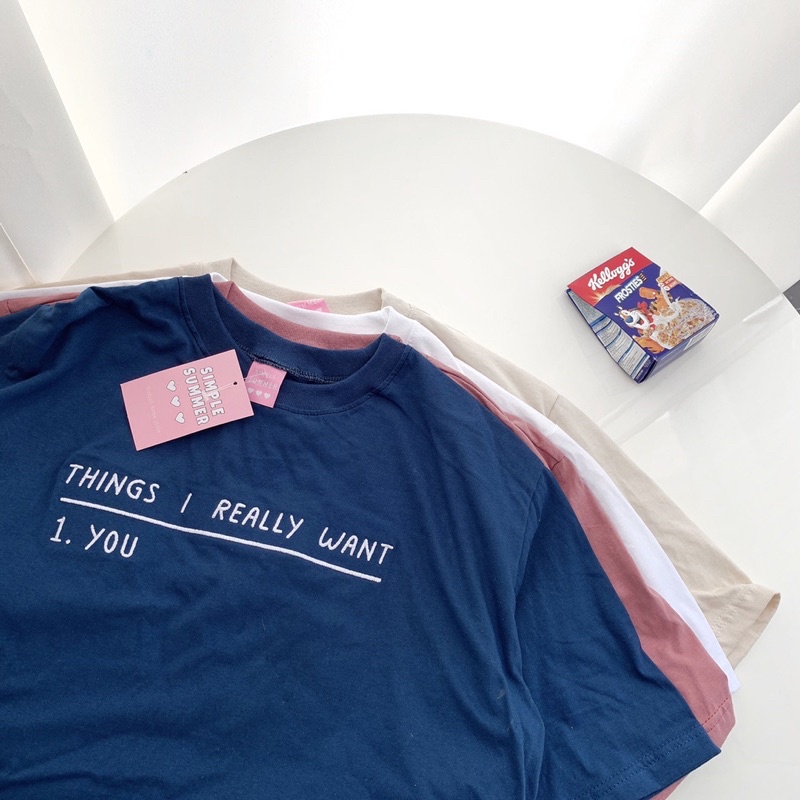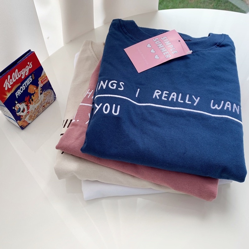 พร้อมส่ง ผ้าคอตตอน🐻เสื้อยืด oversize ปักลายสไตล์มินิมอล ปักthing i really want