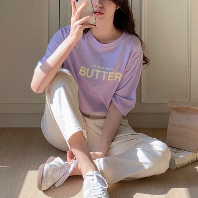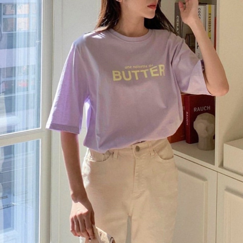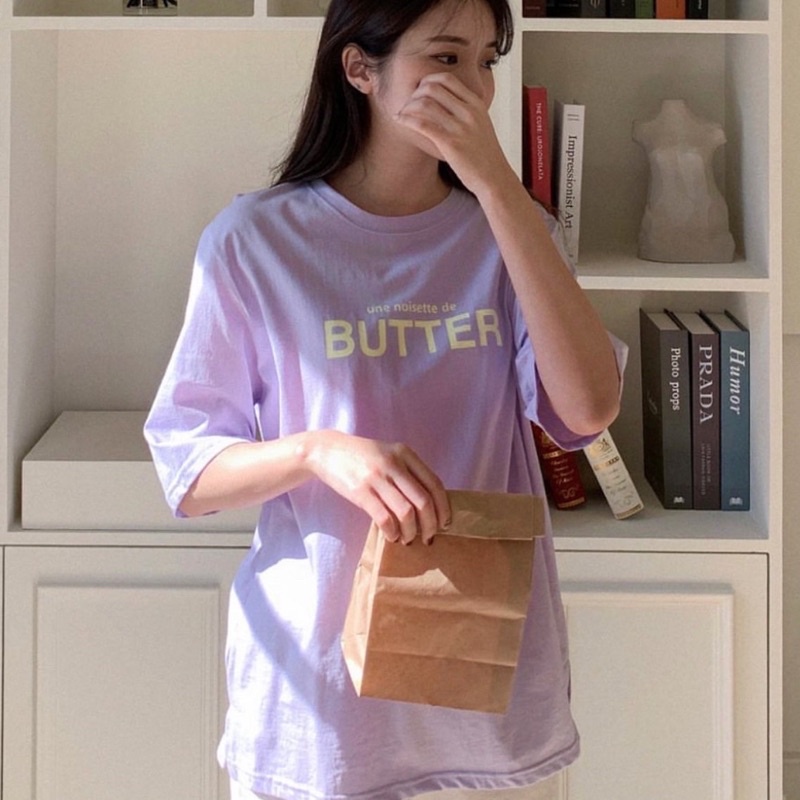 พร้อมส่ง(S_006) ผ้าคอตตอน🥞butter oversized เสื้อยืดทรงโอเวอร์ไซต์ ปักBUTTER