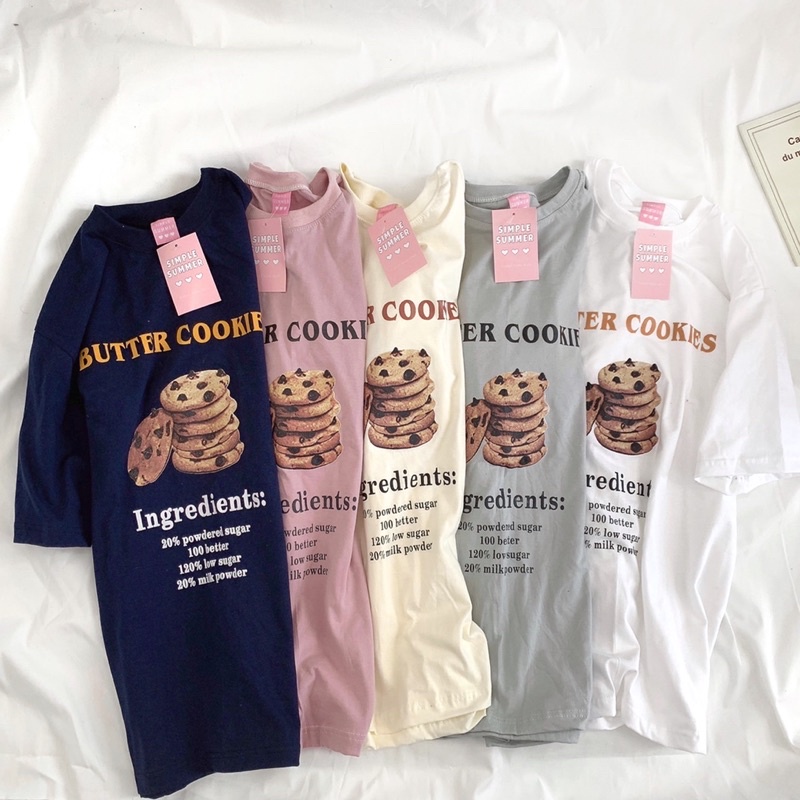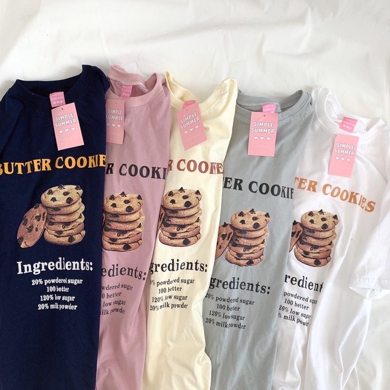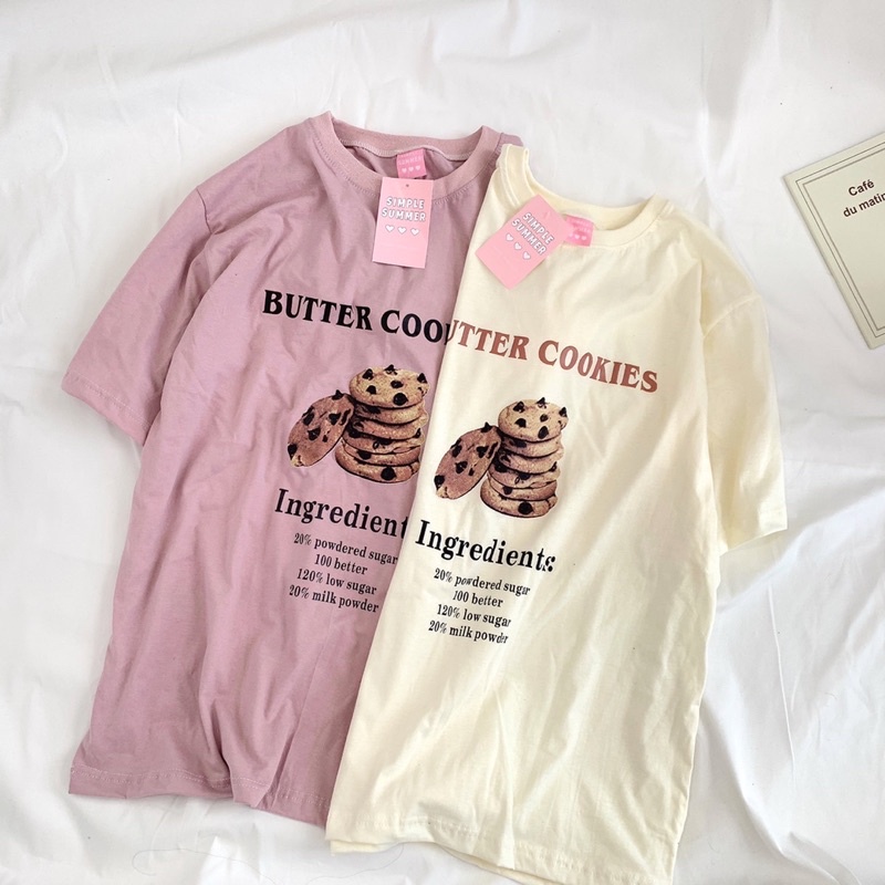 พร้อมส่ง ผ้าคอตตอน 🥞เสื้อยืดทรงโอเวอร์ไซต์ สกรีน COOKIE (S53)