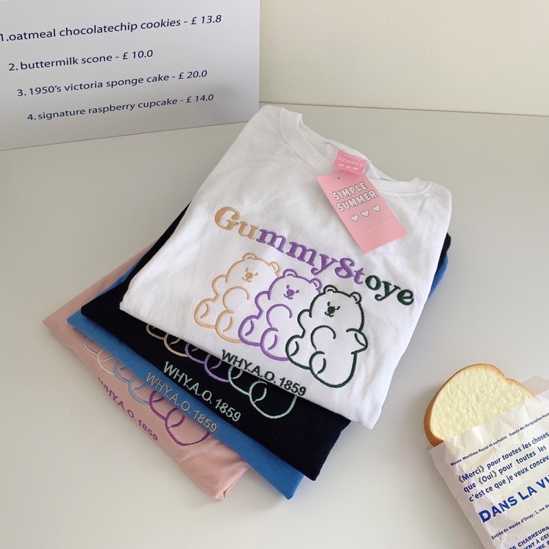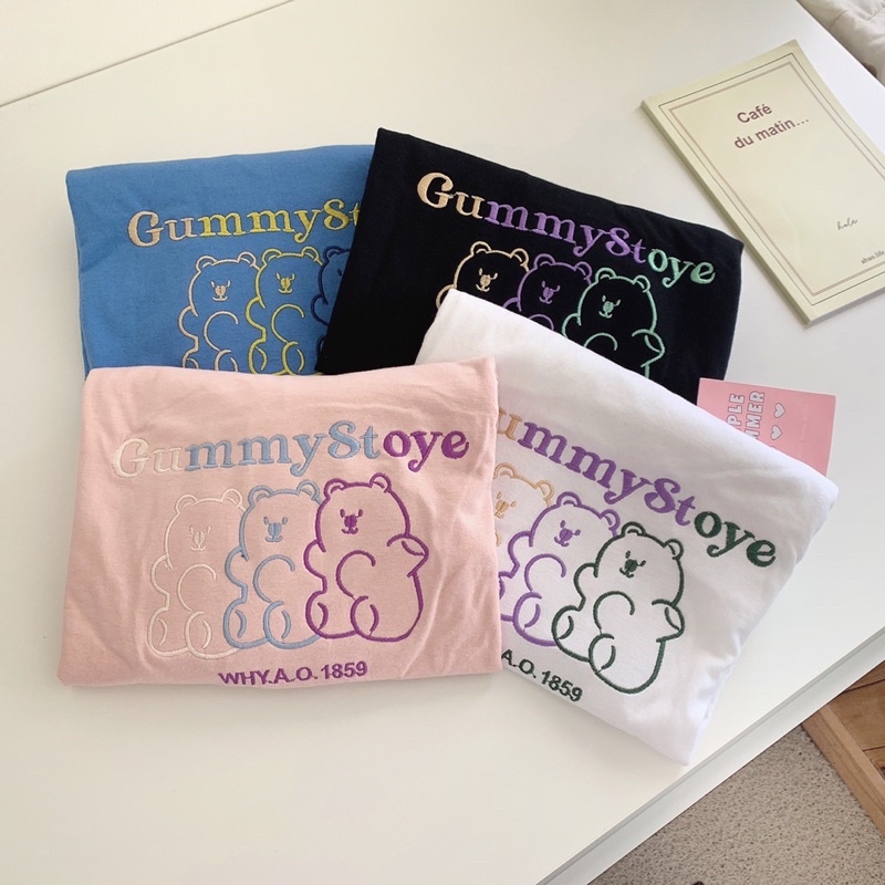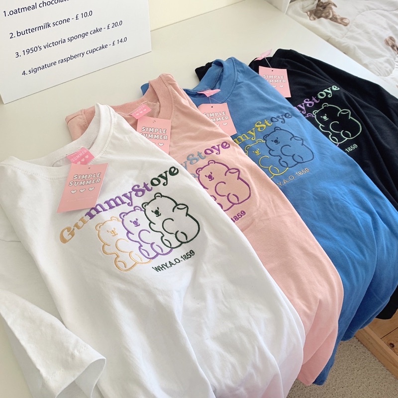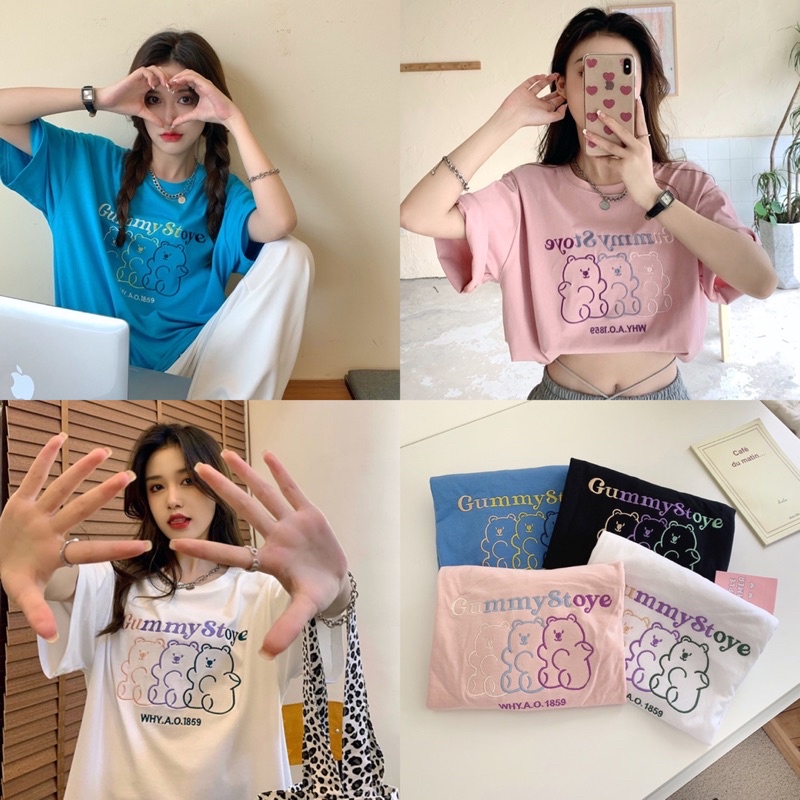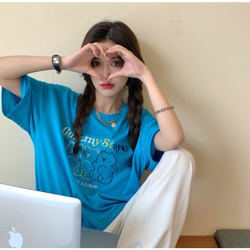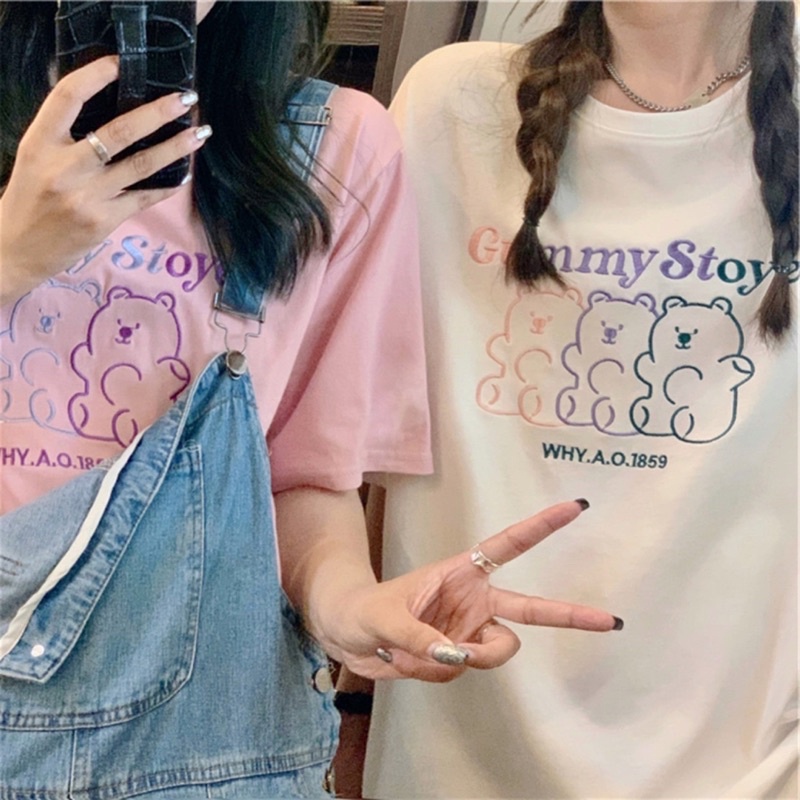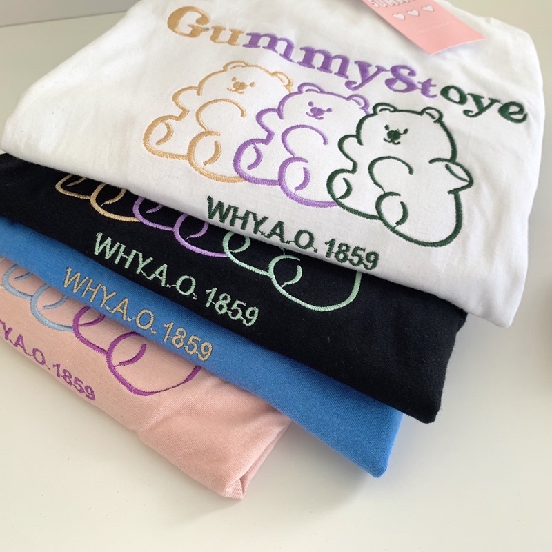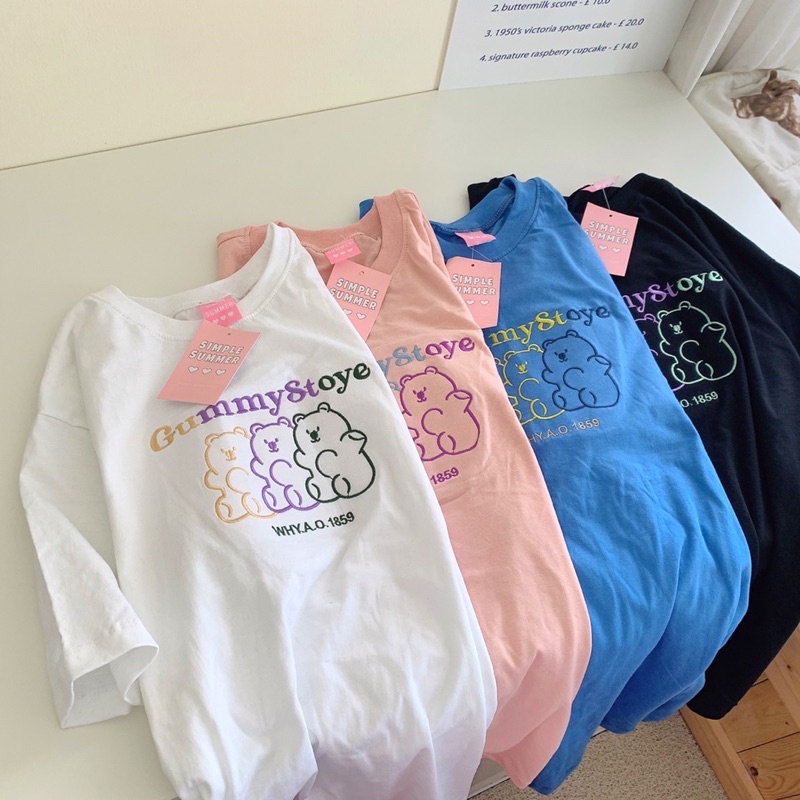 พร้อมส่ง(S_0015) ผ้าคอตตอน🐻gummy story oversize เสื้อยืดทรงโอเวอร์ไซต์ ปักgummy story