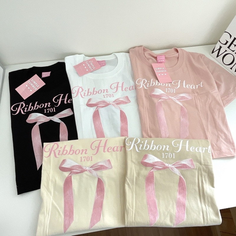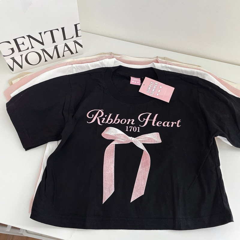 Sugarbeetshop | S294 CROP Ribbon heart เสื้อครอปผ้าคอตตอน