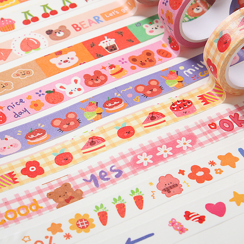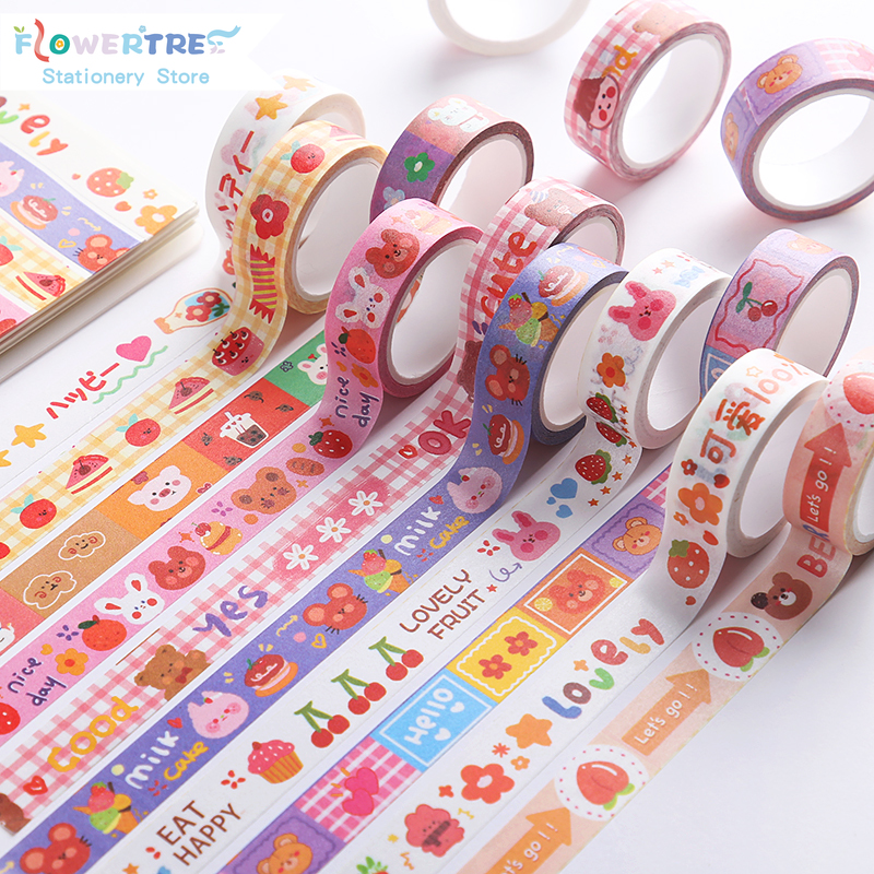 Flowertree เทปวาชิ ลายปาร์ตี้น่ารัก สำหรับตกแต่งไดอารี่และสมุด DIY จำนวน 1 ชิ้น