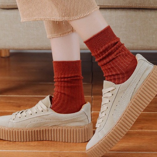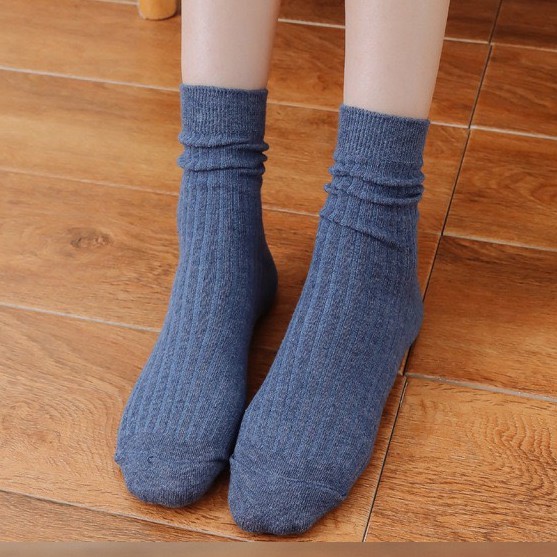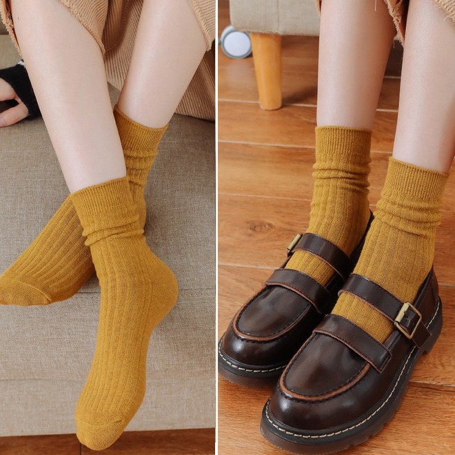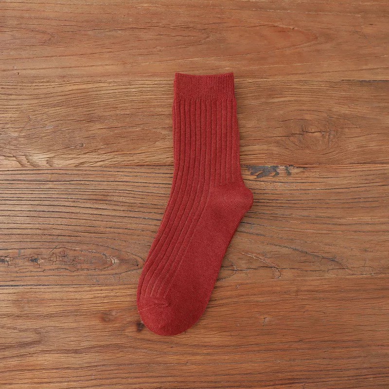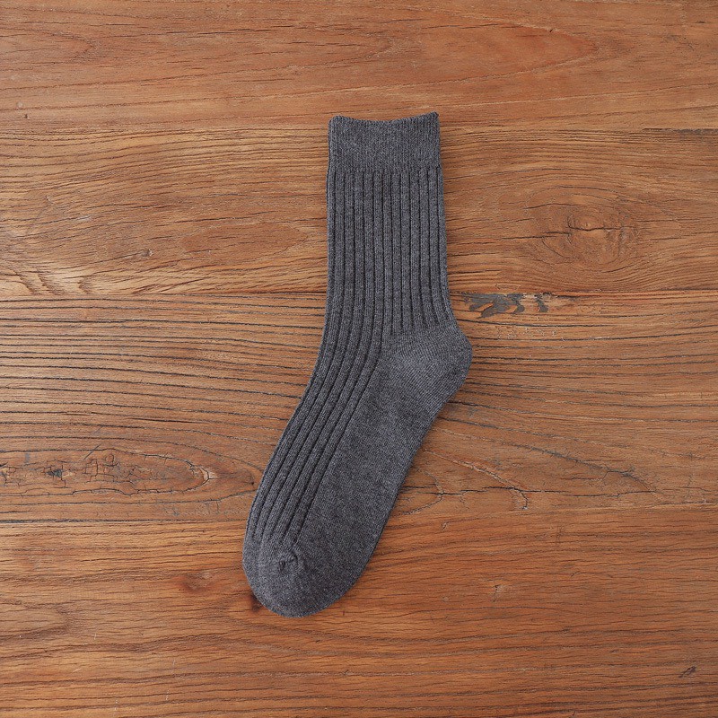 🇰🇷ถุงเท้าเกาหลี ข้อกลาง ผ้าฝ้าย สไตล์วินเทจแฟชั่น สีพื้น สำหรับผู้ชาย