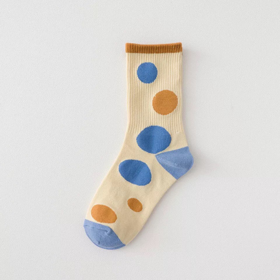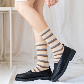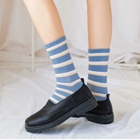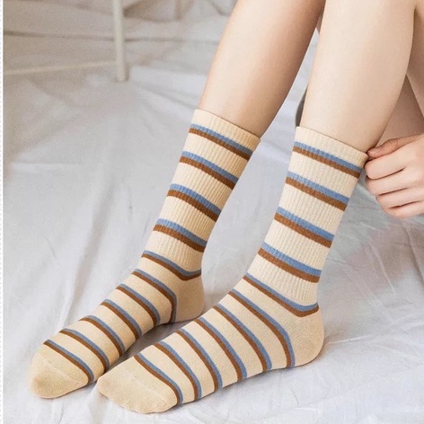 ถุงเท้าเกาหลี ข้อกลาง ผ้าฝ้าย แนวแฟชั่น
