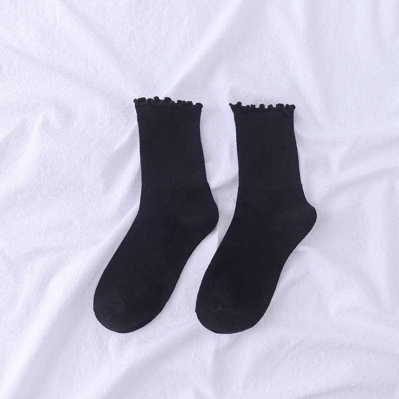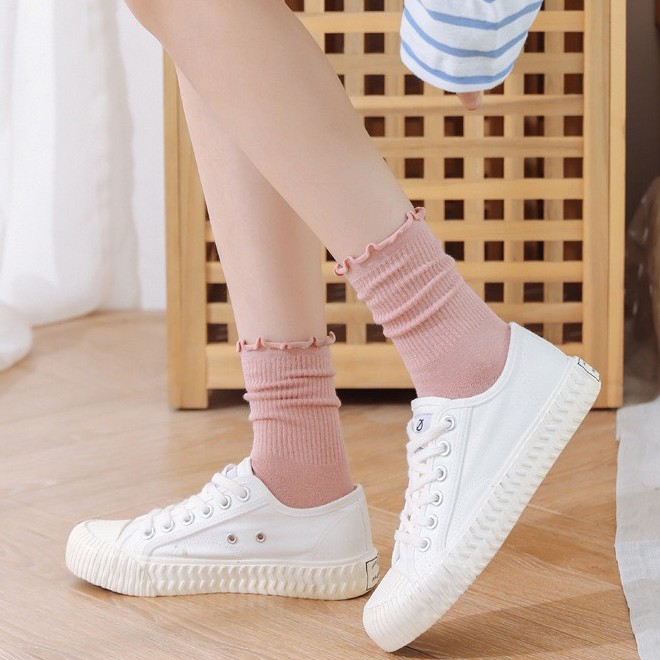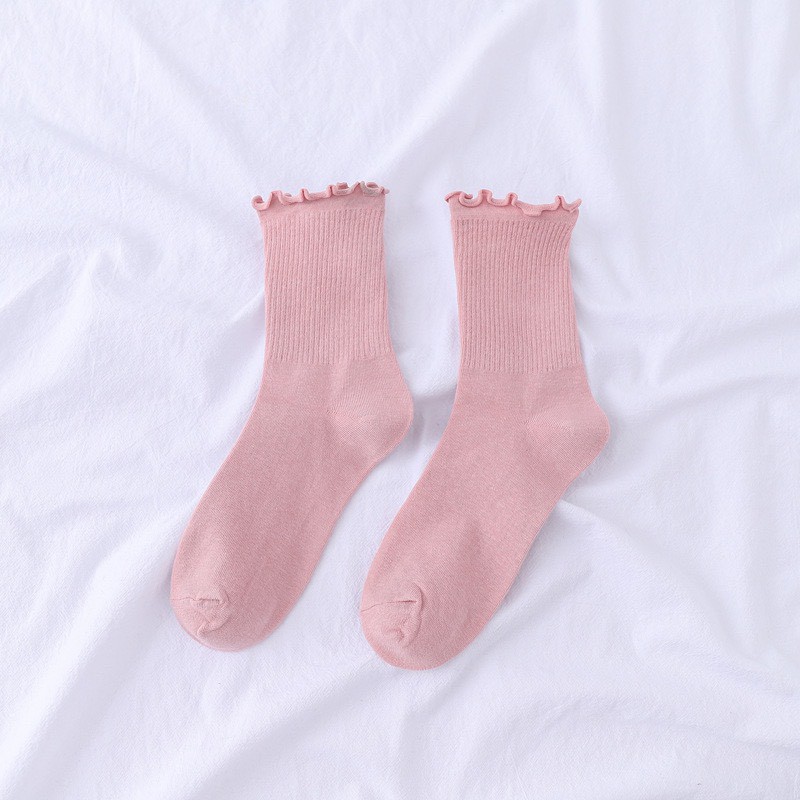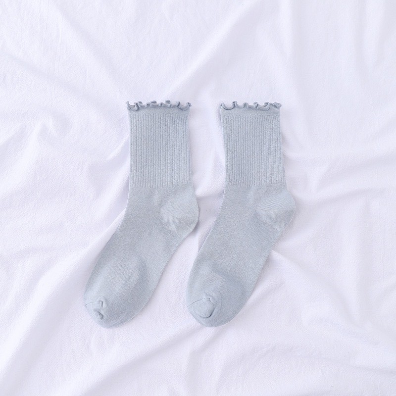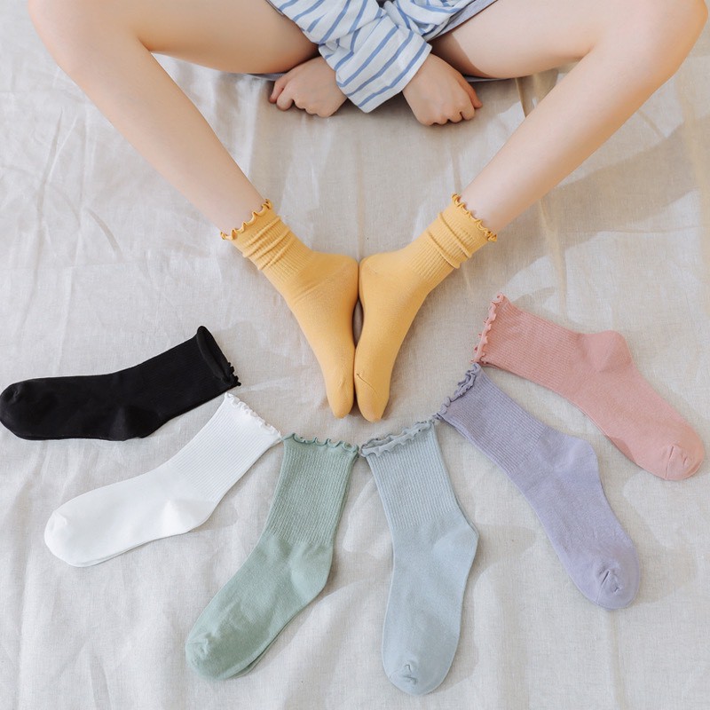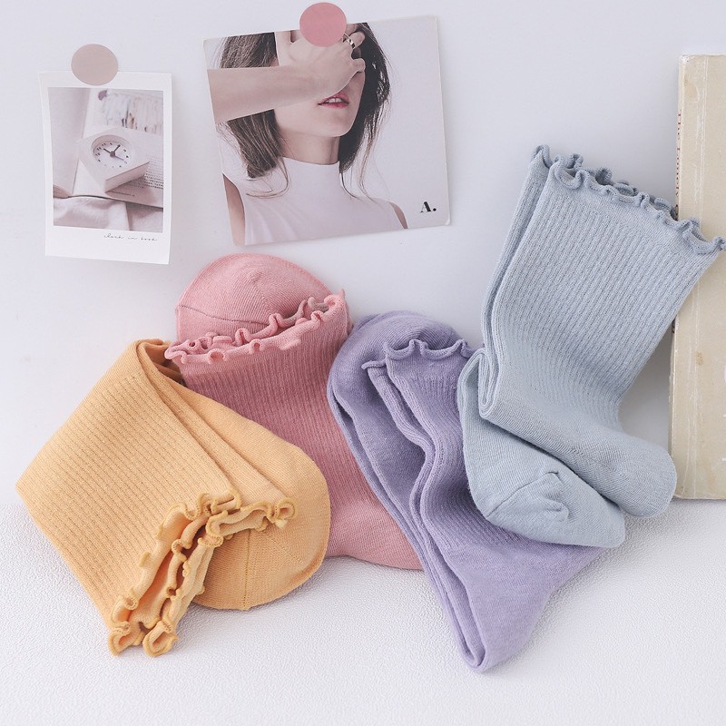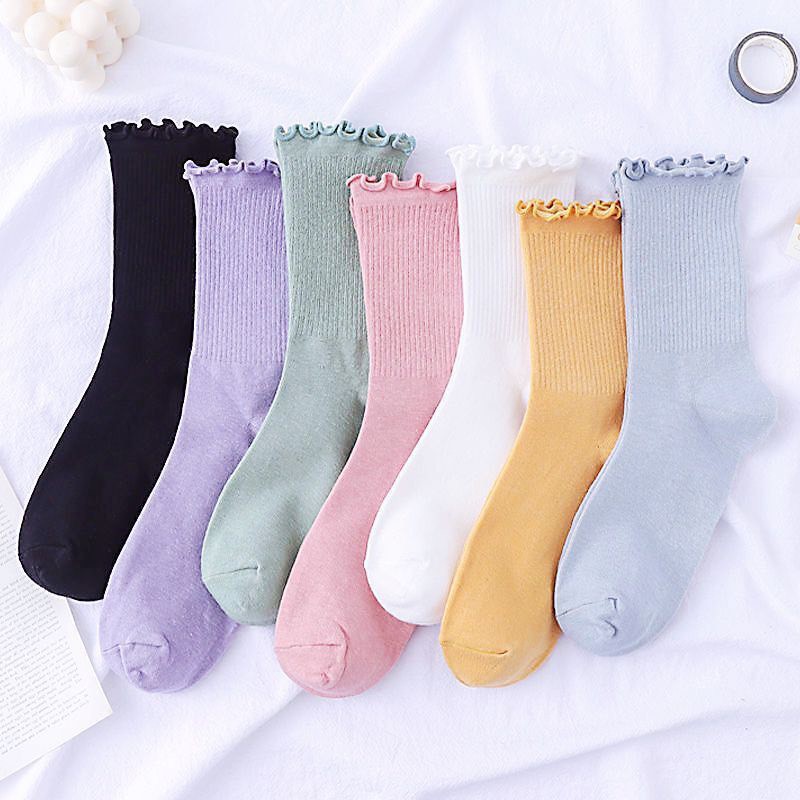 ถุงเท้าผู้หญิง สไตล์เกาหลี ข้อกลาง สีพื้น ผ้าฝ้าย