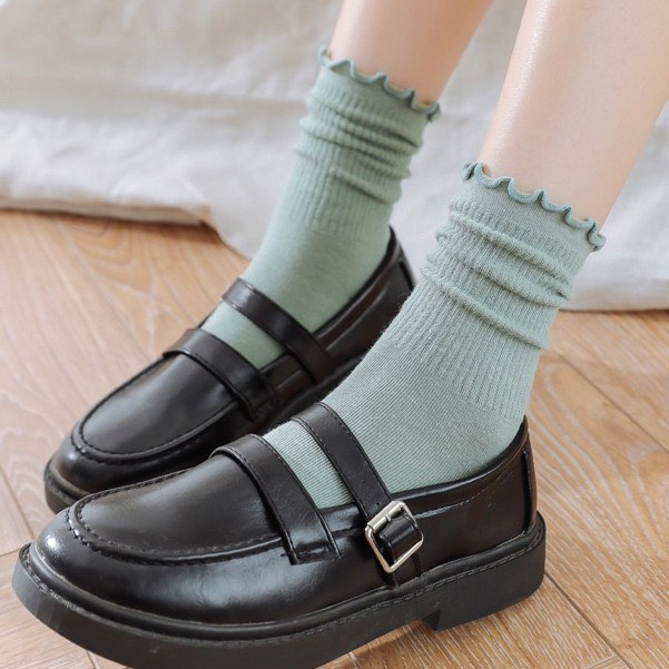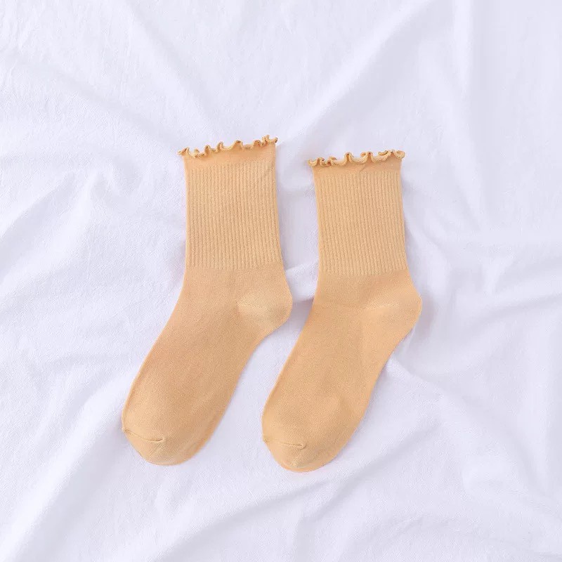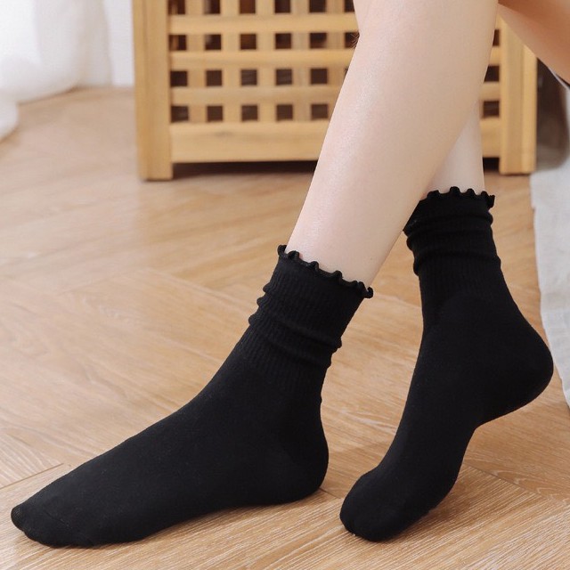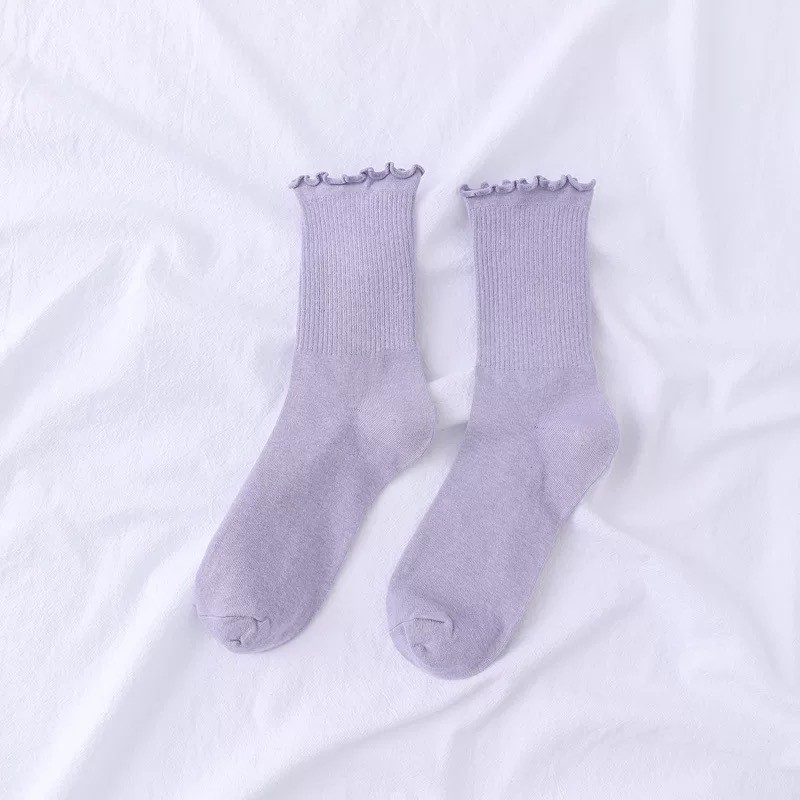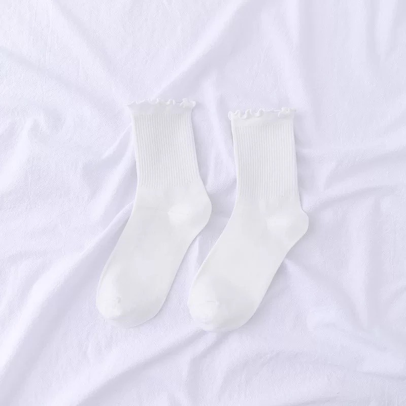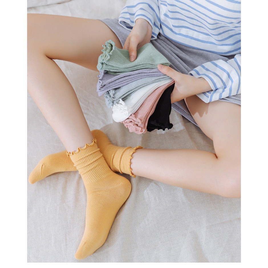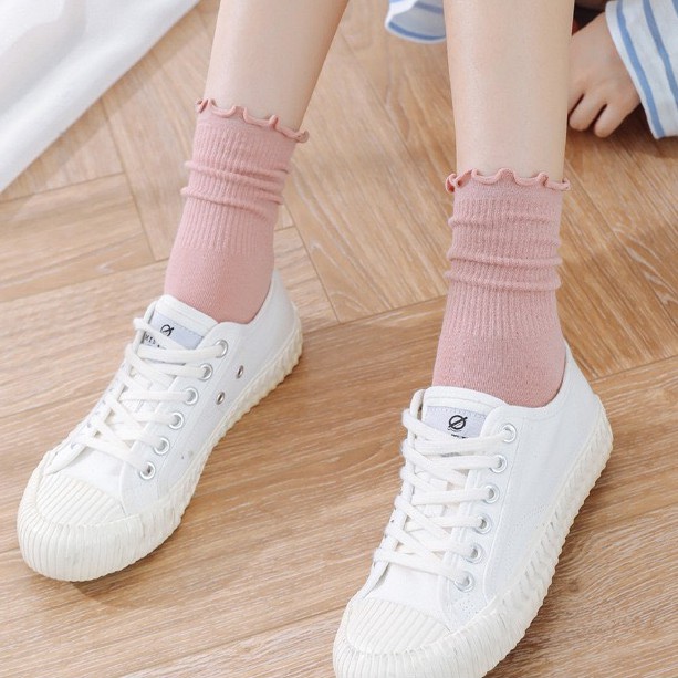 ถุงเท้าผู้หญิง สไตล์เกาหลี ข้อกลาง สีพื้น ผ้าฝ้าย