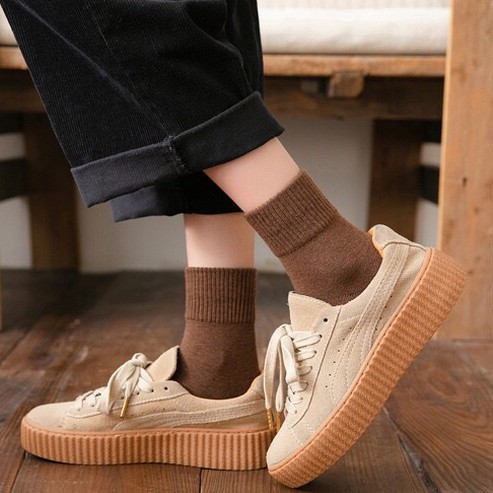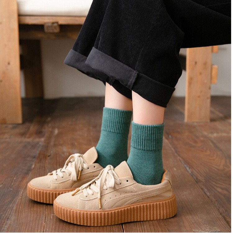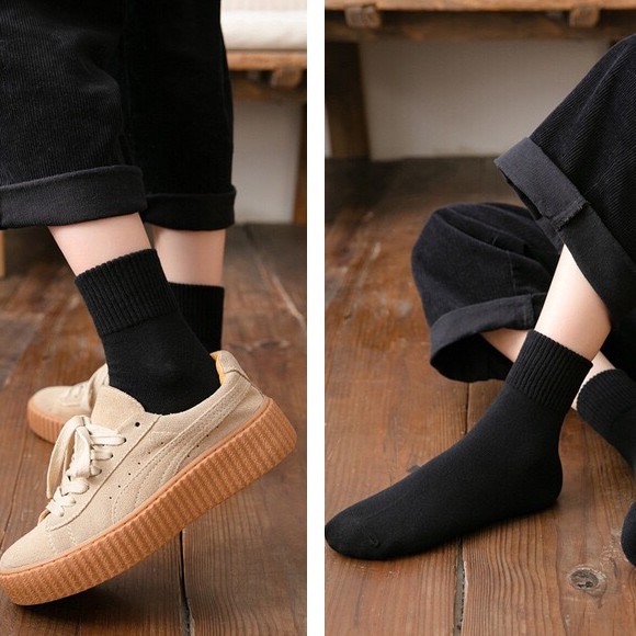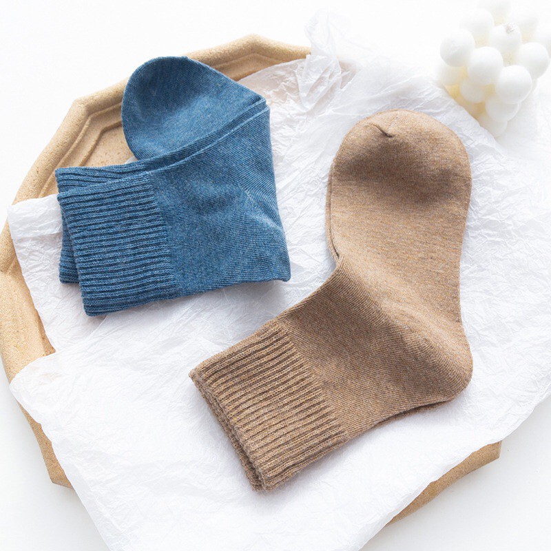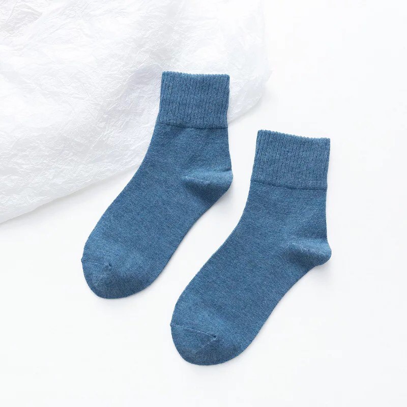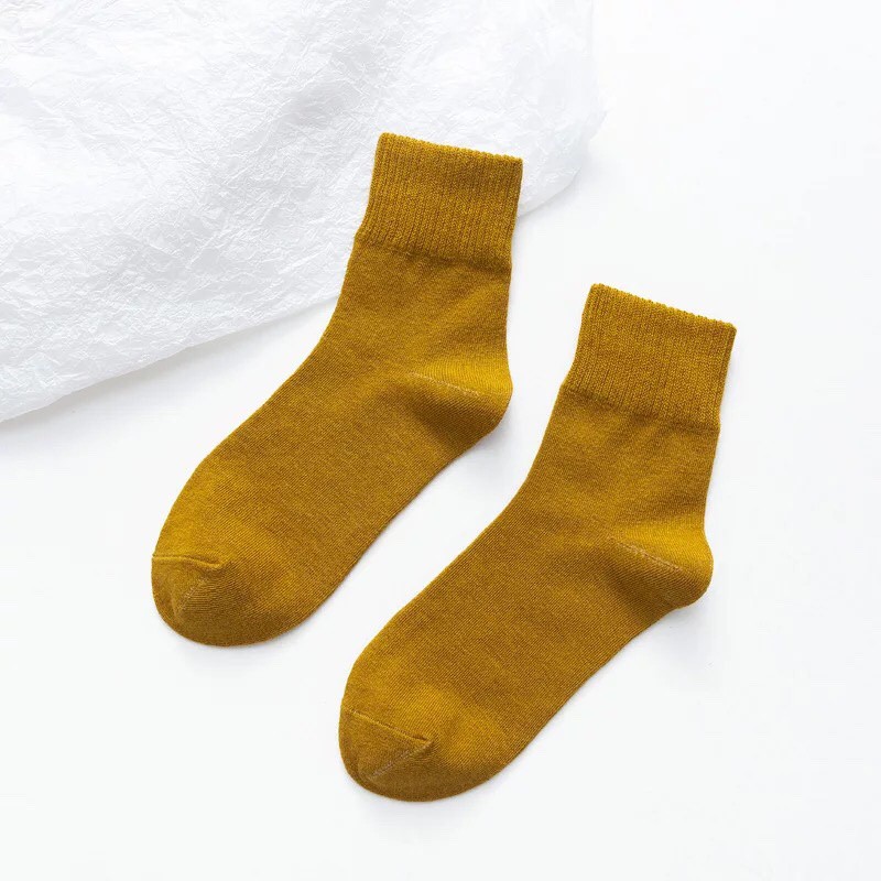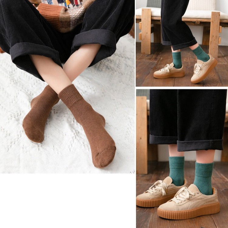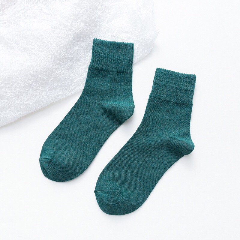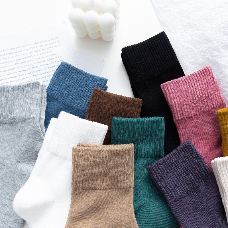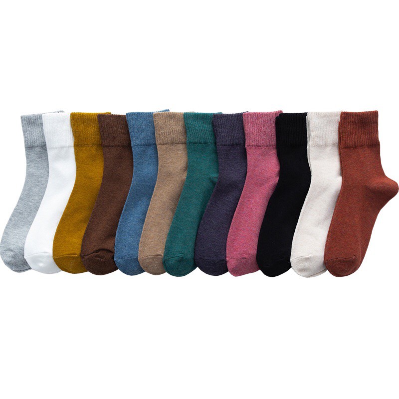 🇹🇭ถุงเท้าญี่ปุ่น สไตล์ญี่ปุ่น แนววินเทจ ข้อกลาง หุ้มข้อ สีพื้น มี 12 สี