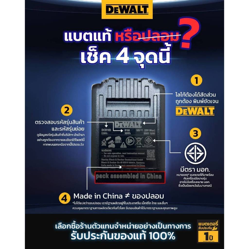 DEWALT แบตเตอรี่ Lithium-ion 20V 5.0Ah รุ่น DCB184 เคสยาง รุ่น DCB184G แบต แบตเตอรี่