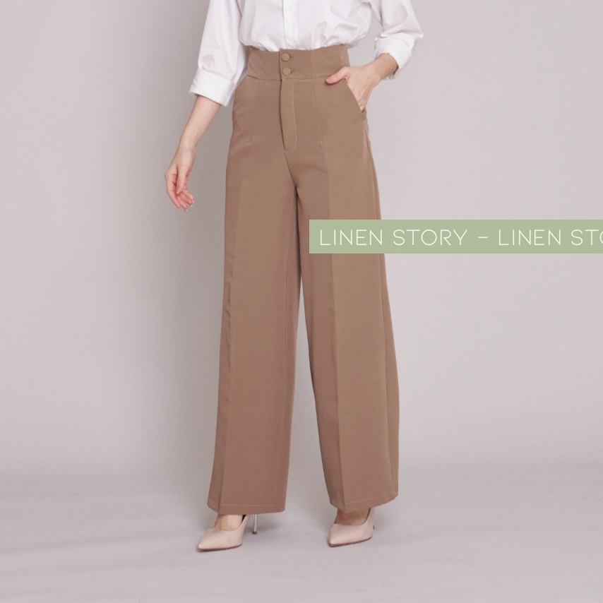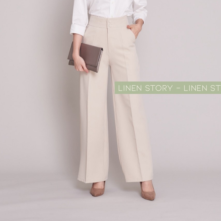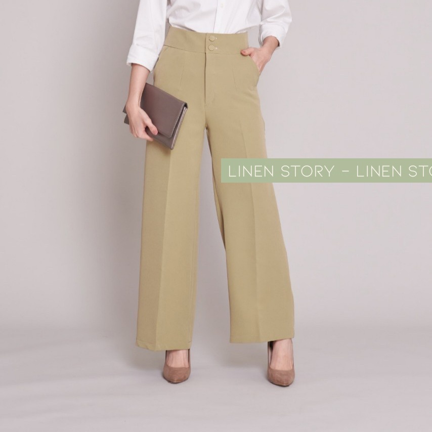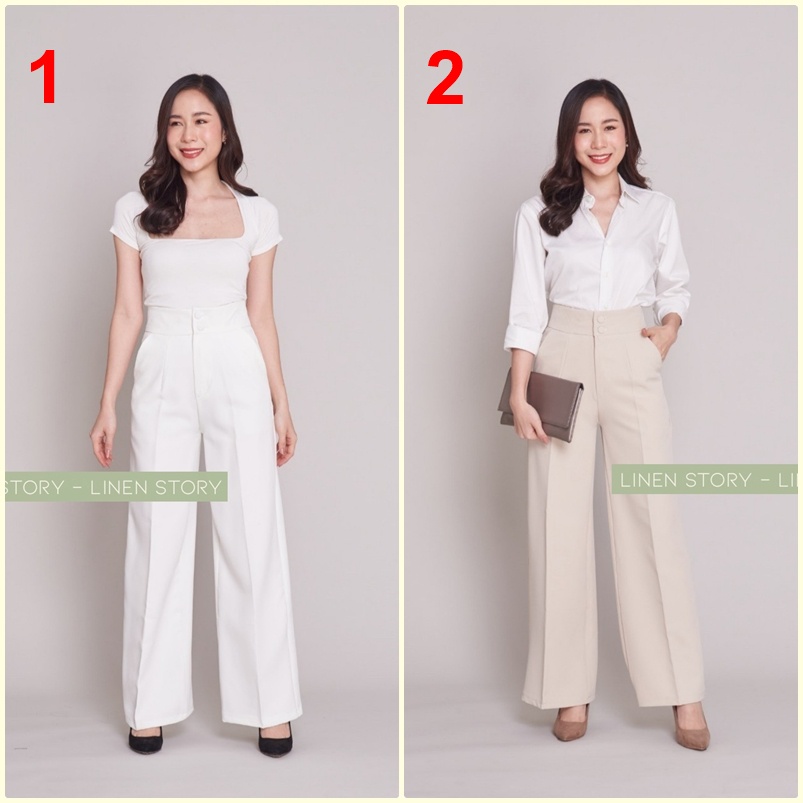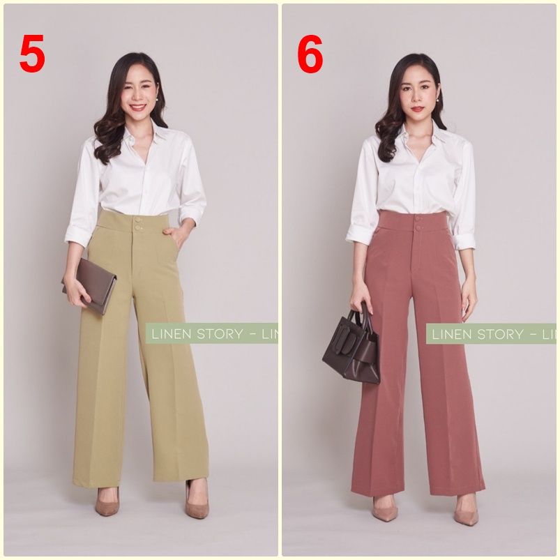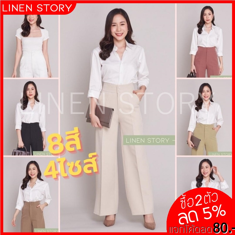 119บาท กางเกงขากระบอกใหญ่ กระดุม 2 เม็ด ขากระบอก ผ้าไอวี่ กางเกงขายาวผู้หญิง กางเกงทำงานผู้หญิง Linen Story