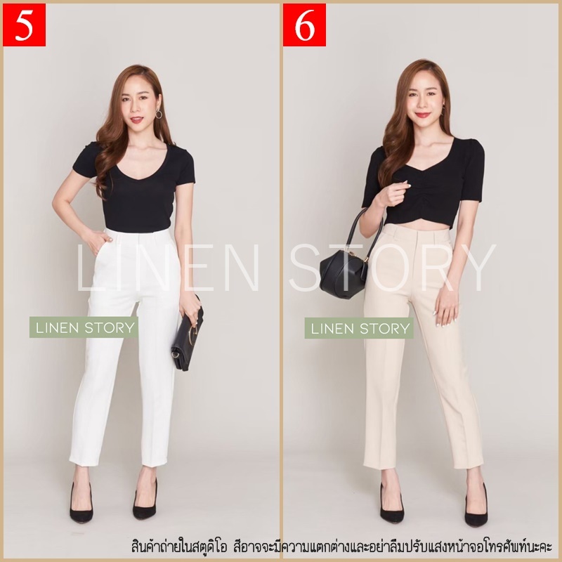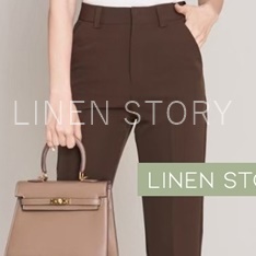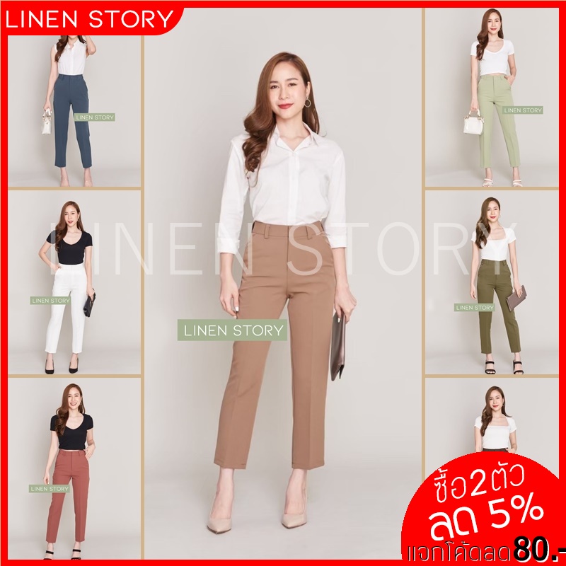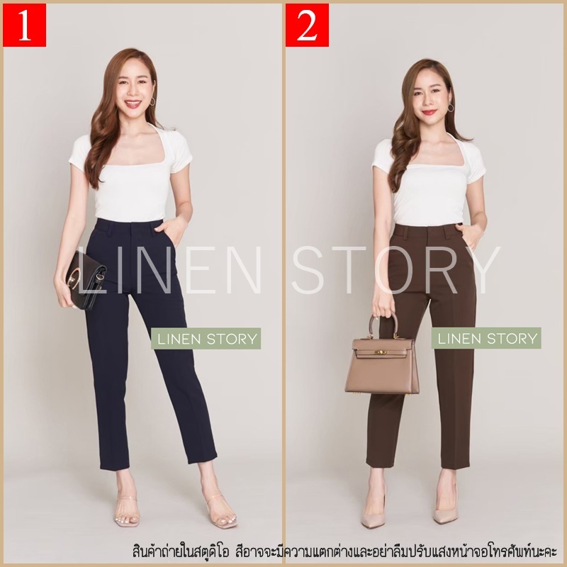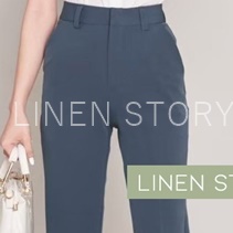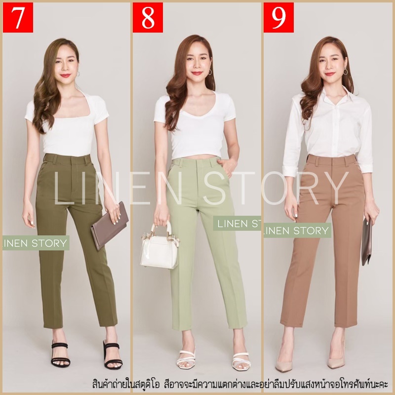 กางเกงขากระบอกผู้หญิง ผ้าไอด้า เอวสูง ขากระบอกเล็ก ขายาวผู้หญิง ทรงกระบอก 9 ส่วน กางเกงทํางานผู้หญิง LINEN S