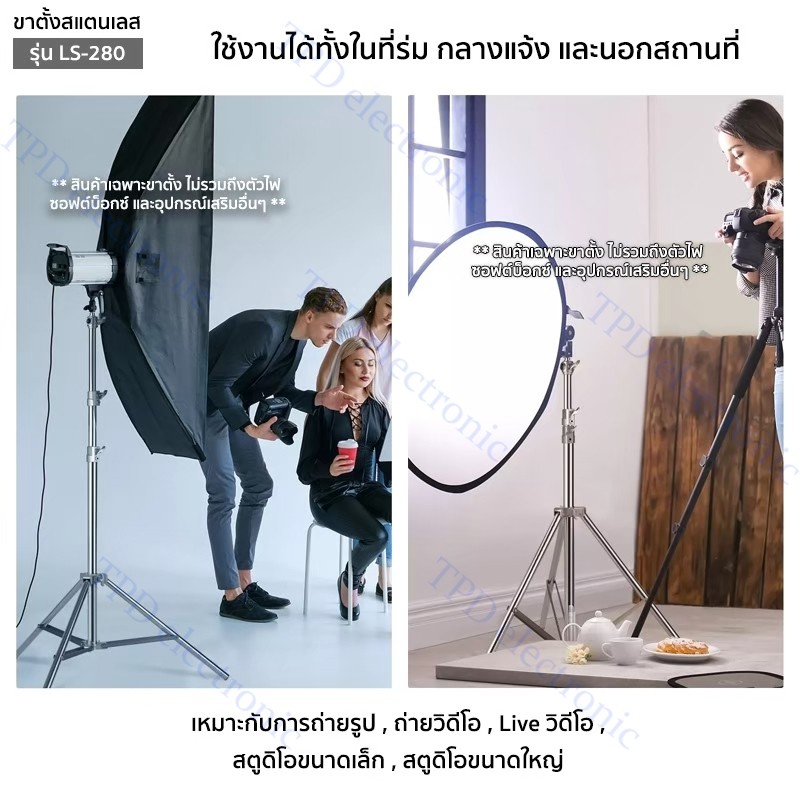 ขาตั้งไฟ 2.8M สแตนเลส สีเงิน LS280ขาตั้งไฟ ขาตั้งแฟลช.