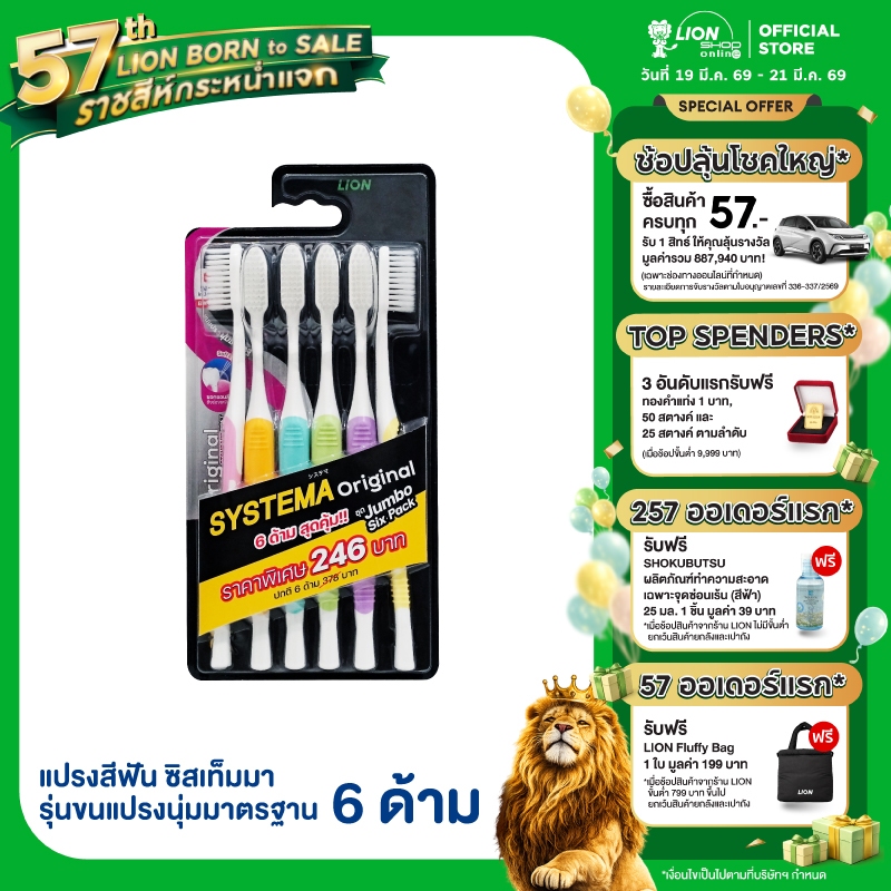 SYSTEMA แปรงสีฟัน ซิสเท็มมา รุ่น Original ขนแปรงนุ่มมาตรฐาน Standard Soft แพ็ค 6 ด้าม