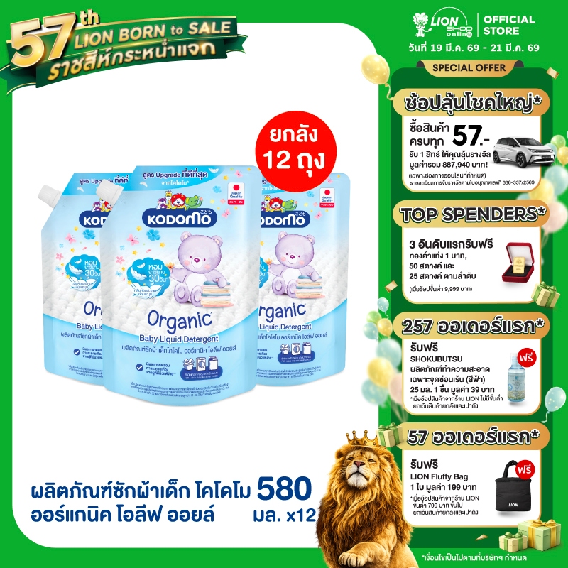 [ ยกลัง ] Kodomo ผลิตภัณฑ์ซักผ้าเด็กโคโดโมออร์แกนิคโอลีฟออยล์ สำหรับเด็กแรกเกิด Organic Olive Oil 580 มล.(ถุงเติม)12 ถุง