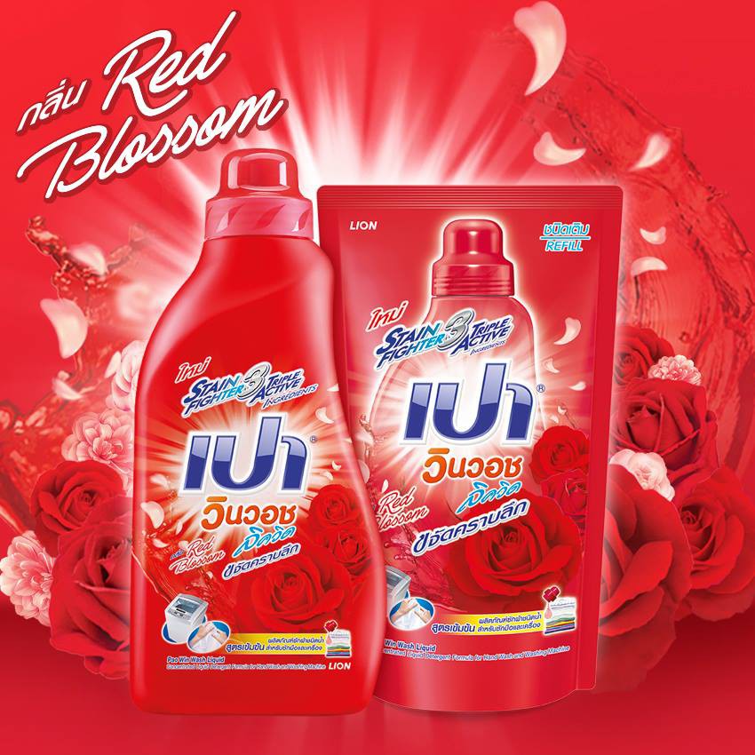 Pao Win Wash Liquid ผลิตภัณฑ์ซักผ้า เปา วินวอช ลิควิด สูตรเข้มข้น Red Blossom ถุงเติม 700 มล. 6 ถุง
