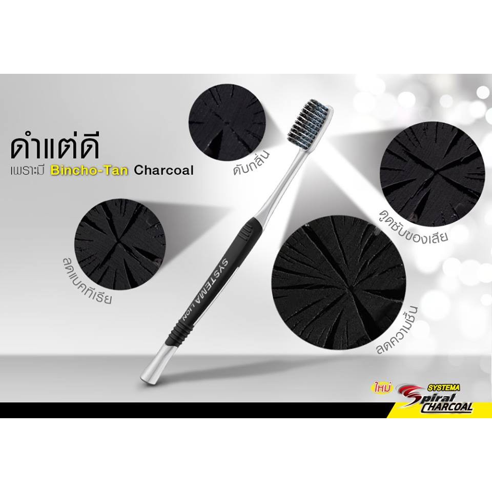 SYSTEMA Spiral Charcoal แปรงสีฟัน ซิสเท็มมา สไปรัล ชาร์โคล 3 ด้าม (คละสี)