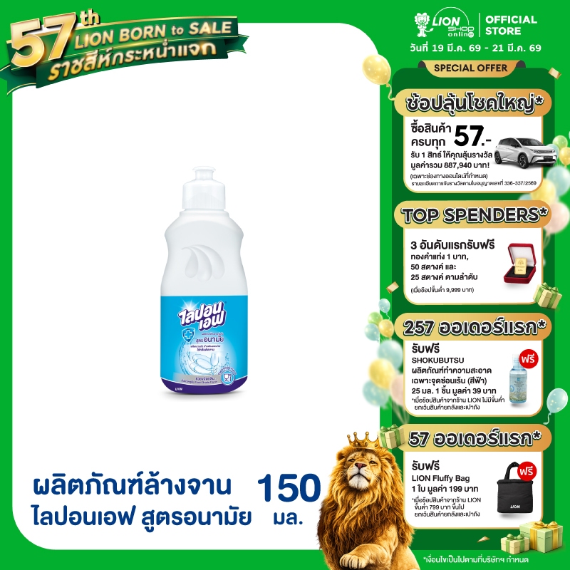 LIPON F ผลิตภัณฑ์ล้างจาน ไลปอนเอฟ สูตรอนามัย 150 มล. LIONSOS