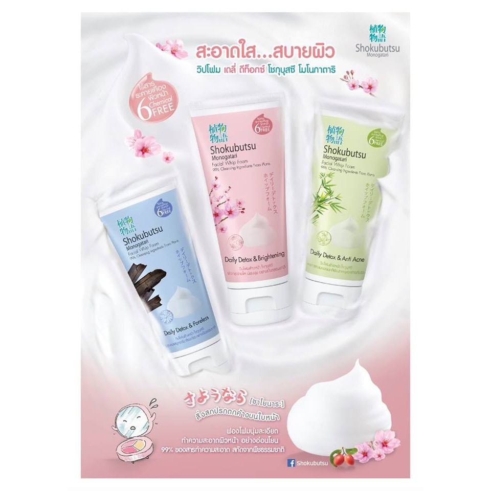 SHOKUBUTSU วิปโฟมล้างหน้า โชกุบุสซึ Daily Detox & Brightening สูตร ซากุระ 100 กรัม 2 หลอด