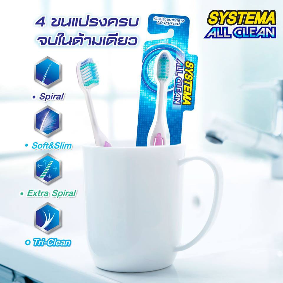 SYSTEMA แปรงสีฟัน ซิสเท็มมา ALL CLEAN 4D 3 ด้าม คละสี
