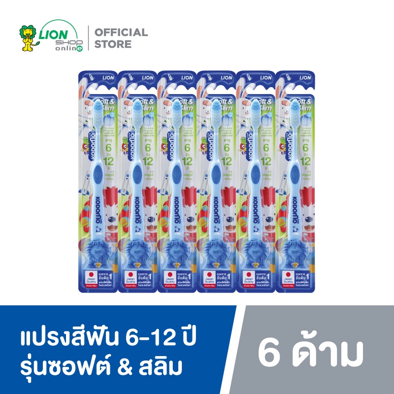 KODOMO แปรงสีฟัน โคโดโม รุ่นซอฟต์ & สลิม 6 ด้าม (คละสี)