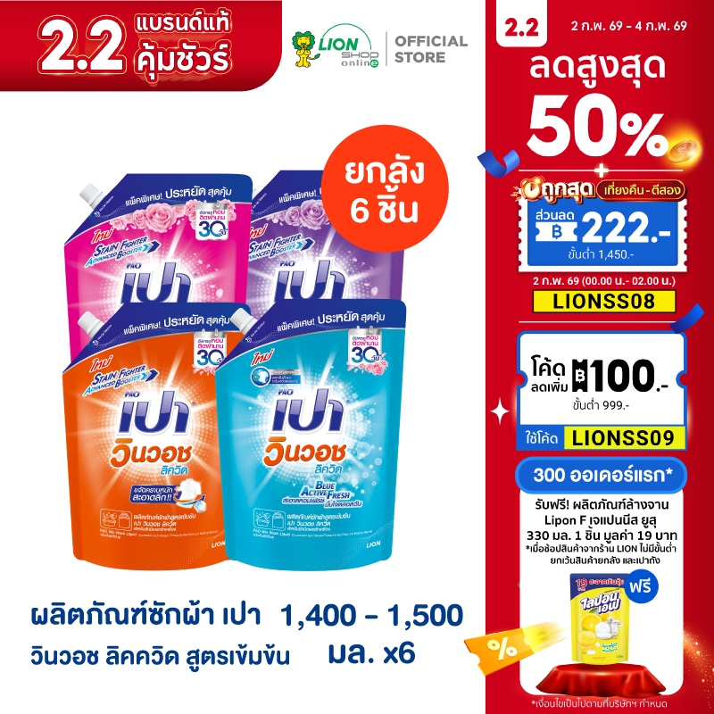 [ยกลัง] PAO Win Wash Liquid เปา วินวอช ลิควิด 1,400-1,500 ml ชนิดถุงเติม 6 ถุง