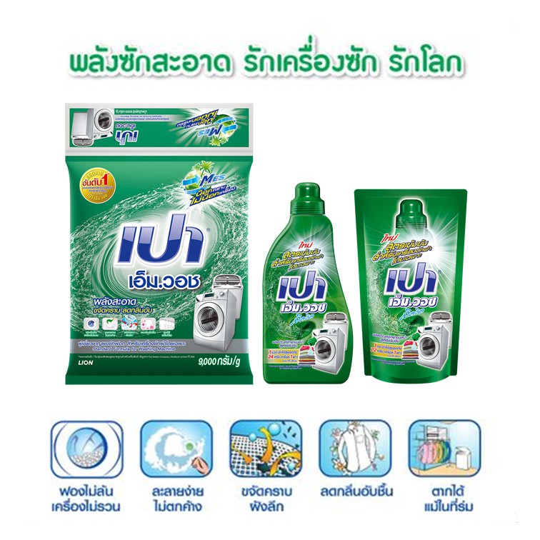 [ยกลัง] PAO M Wash ผงซักฟอก เปา เอ็ม วอช สำหรับ เครื่องซักผ้า ฝาบน และ ฝาหน้า 9,000 กรัม 2 ถุง