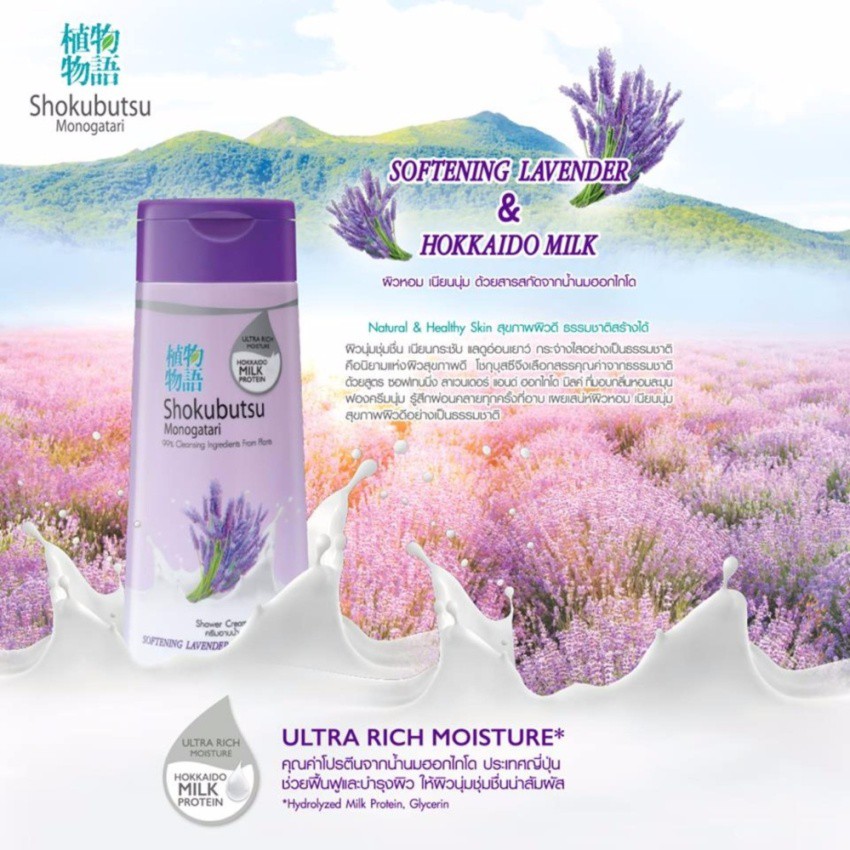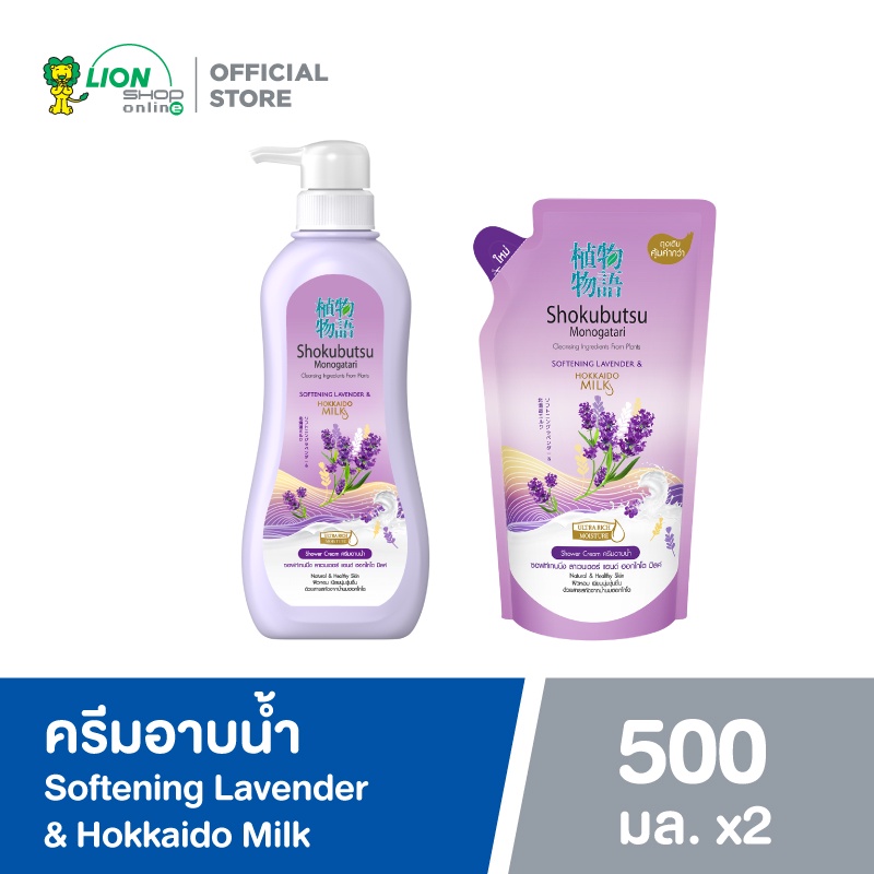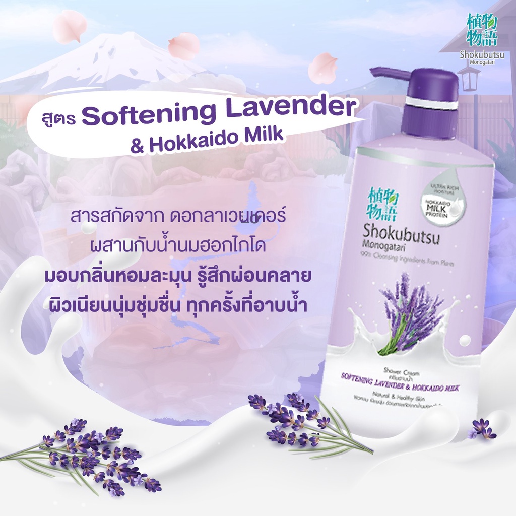 SHOKUBUTSU ครีมอาบน้ำ โชกุบุสซึ สูตร SOFTENING LAVENDER & HOKKAIDO MILK (ม่วง) ขวดปั๊ม + ถุงเติม 500 มล.