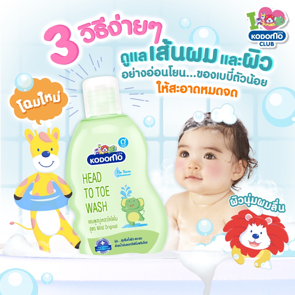KODOMO Mild Original แชมพู สบู่เหล ว โคโดโม Head to Toe Wash ขวดปั๊ม 400 มล.