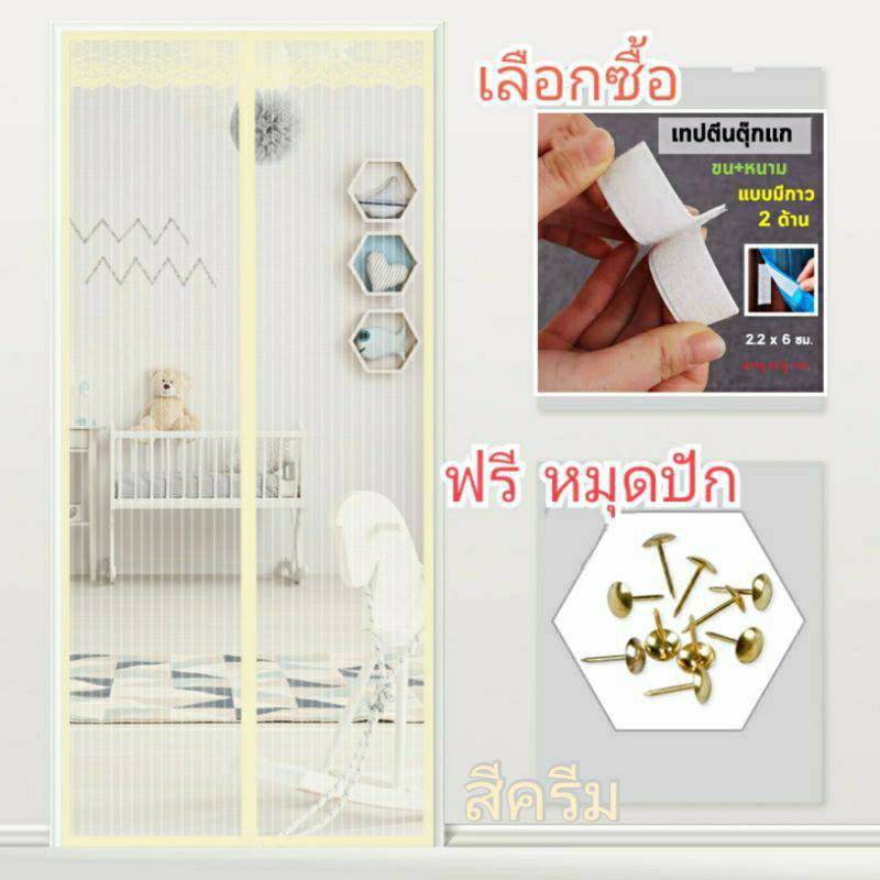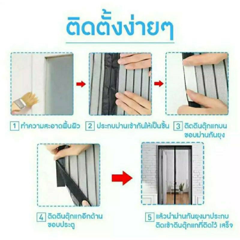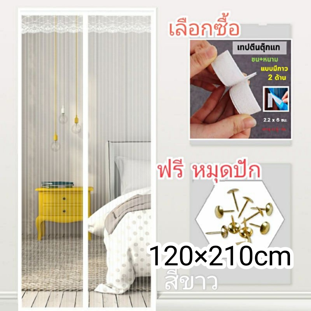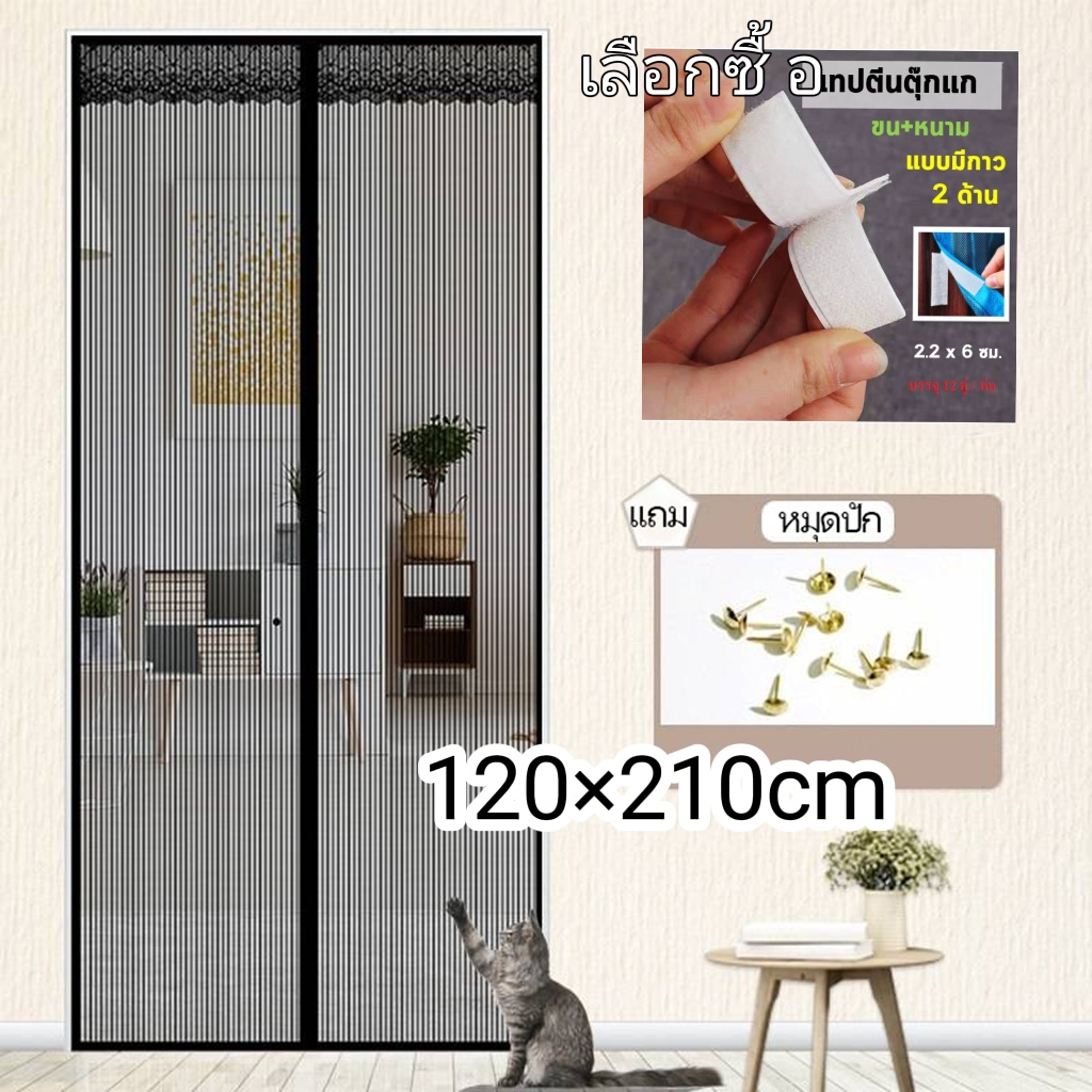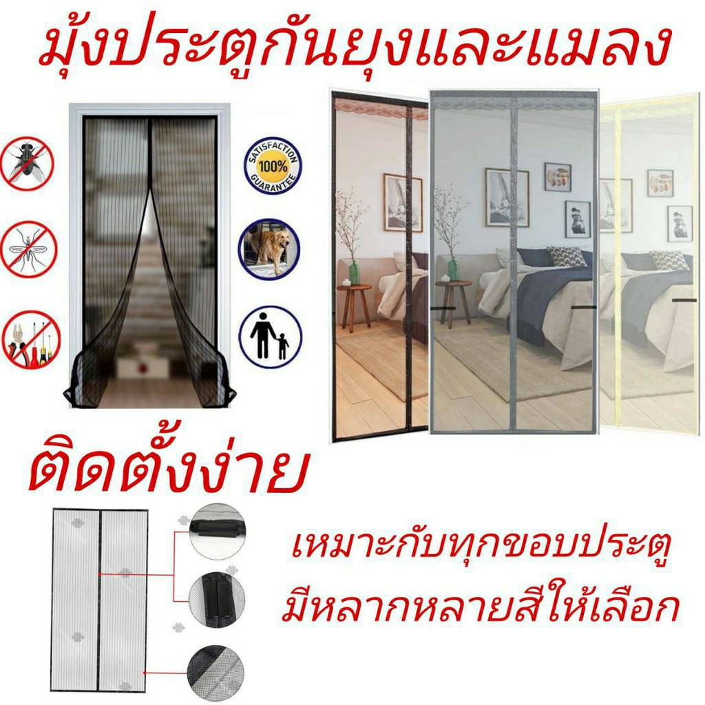 ใหม่ ม่านแม่เหล็กกันยุง ติดตั้งง่ายมีแม่เเหล็กทำให้ผ้าม่านปิดสนิท แถมฟรี หมุดทองเหลือง