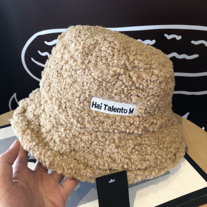 ins หมวกสไตล์ญี่ปุ่น หมวกขนแกะนุ่ม ปักลายตัวอักษร ให้ความอบอุ่น