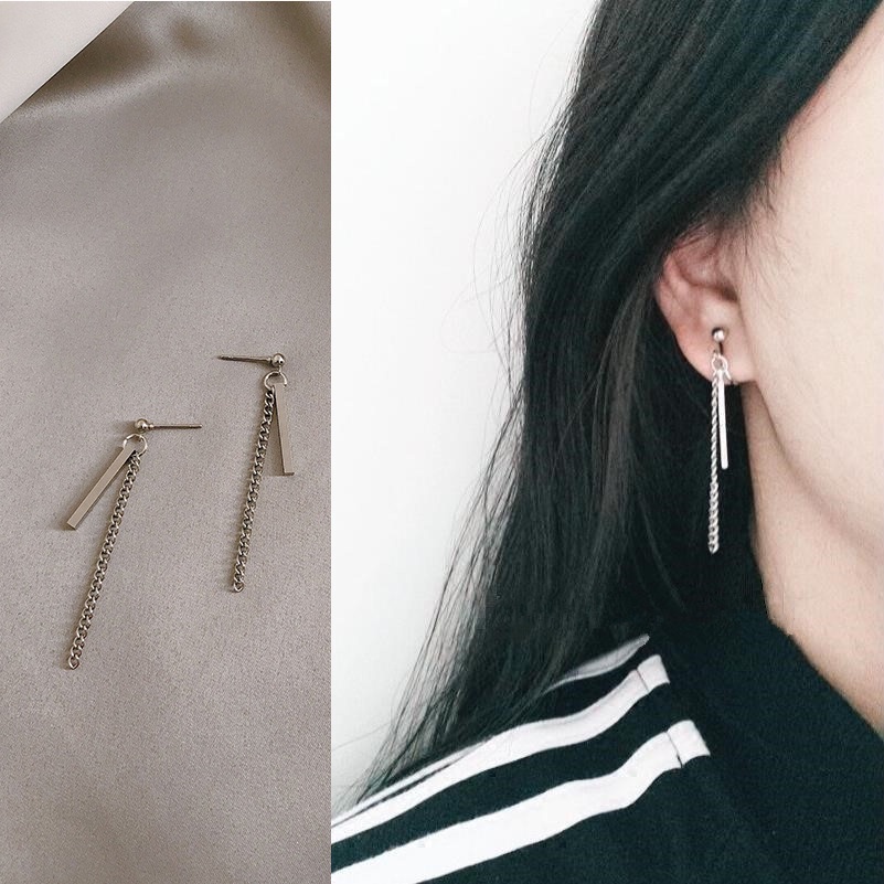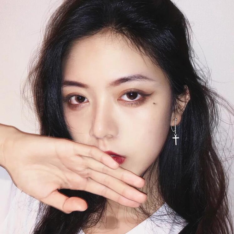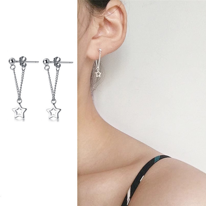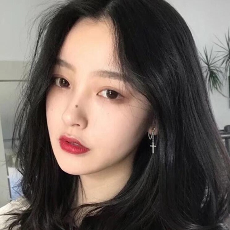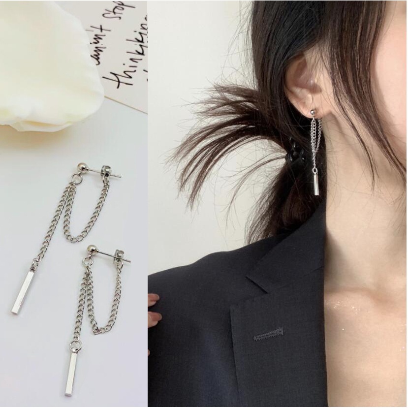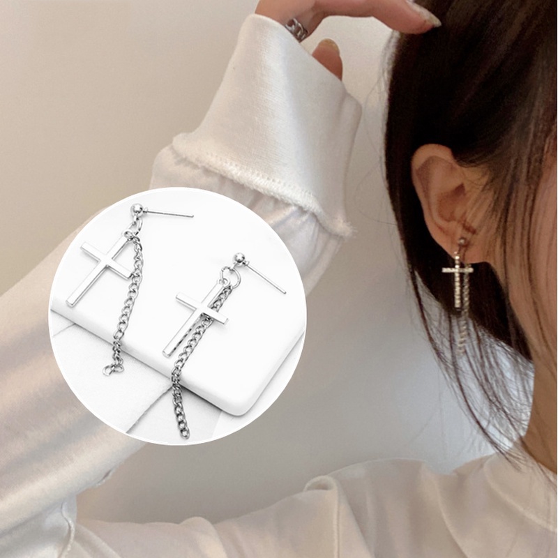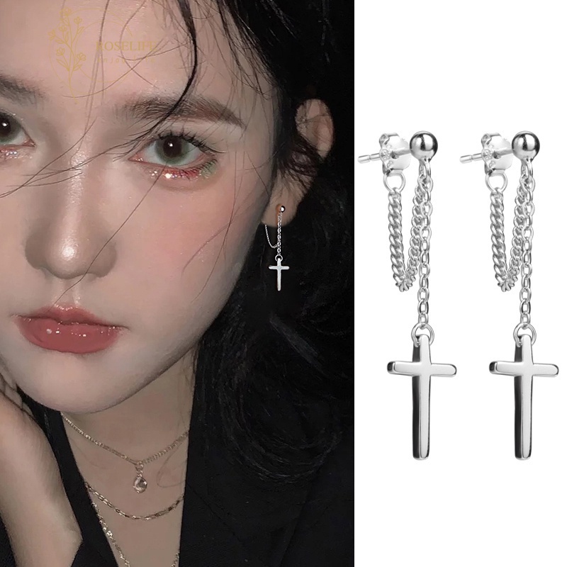 Roselife ต่างหูโซ่ห้อยจี้ไม้กางเขนสีเงินสําหรับผู้หญิง 1 คู่
