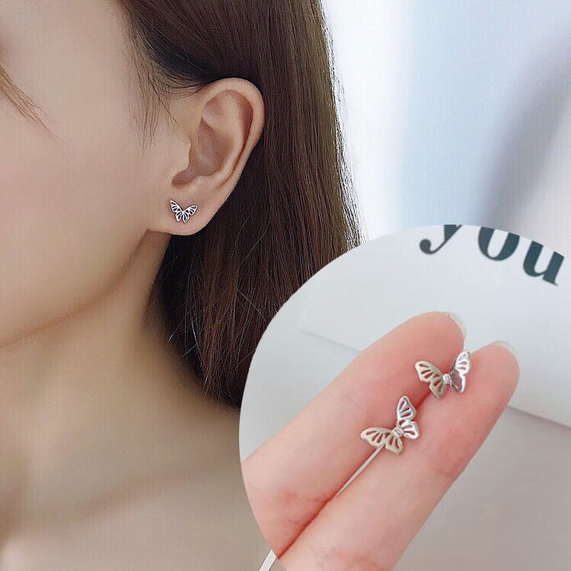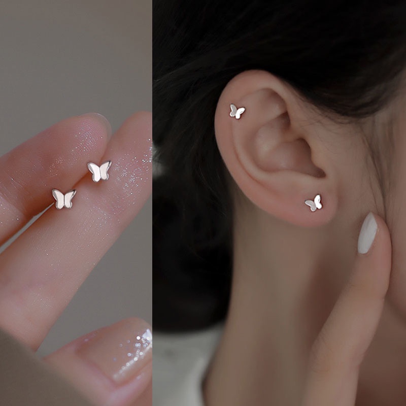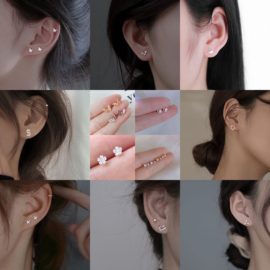 Roselife [1 คู่] ต่างหูเงิน S925 รูปทรงผีเสื้อ ดอกไม้ หัวใจ ขนาดเล็ก สําหรับผู้หญิง