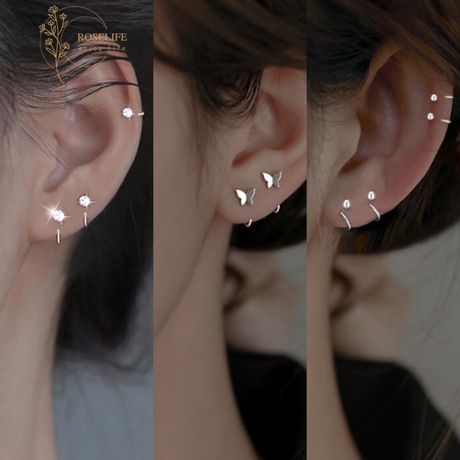 Roselife ต่างหูห่วงเพทาย ทรงกลม ป้องกันการแพ้ S925 สําหรับผู้หญิง 1 คู่