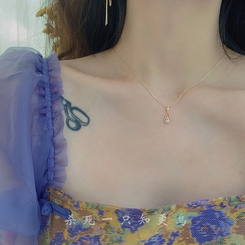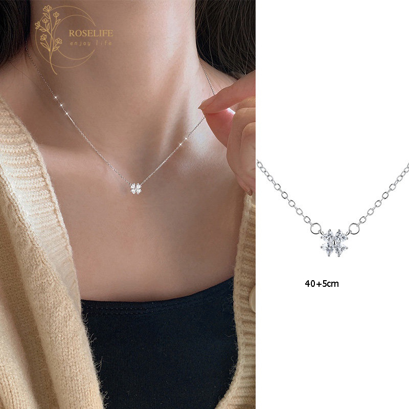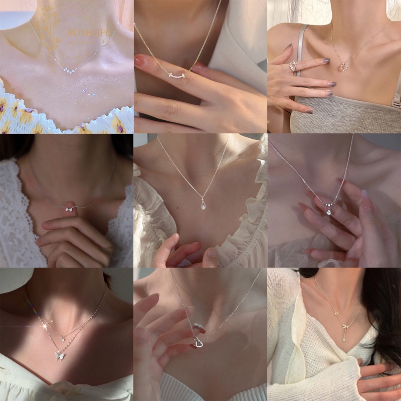 Roselife เกาหลี เพทาย หัวใจ หยดน้ํา ใบไม้ ปีก จี้สร้อยคอ สําหรับผู้หญิง ส่องแสง ฤดูร้อน สร้อยคอโซ่ เครื่องประดับ
