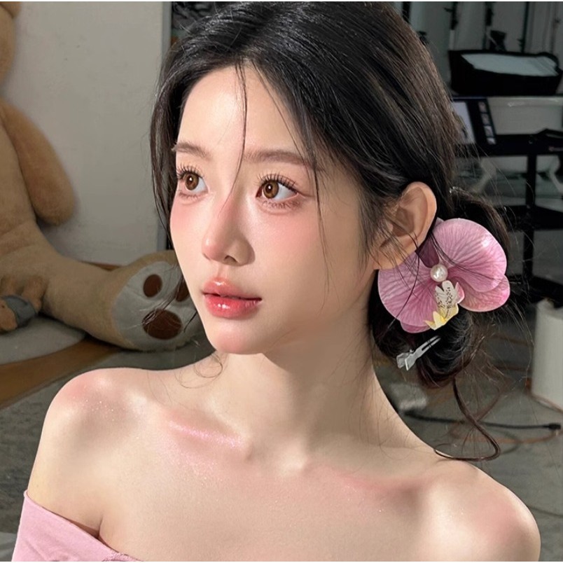 Roselife กิ๊บติดผม รูปดอกกล้วยไม้ ผีเสื้อ สีชมพู สไตล์ฮาวาย เครื่องประดับ สําหรับผู้หญิง