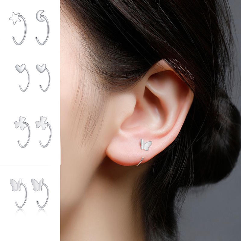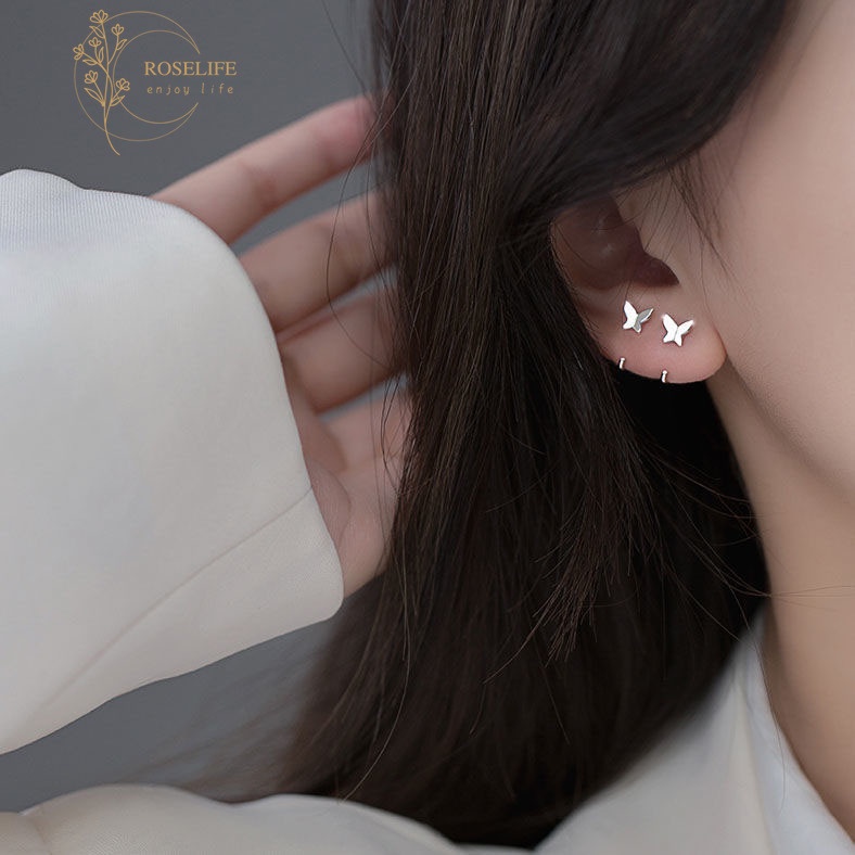 Roselife ต่างหูแฟชั่น S925 จี้รูปผีเสื้อ ดวงจันทร์ ดาว เครื่องประดับสําหรับสตรี