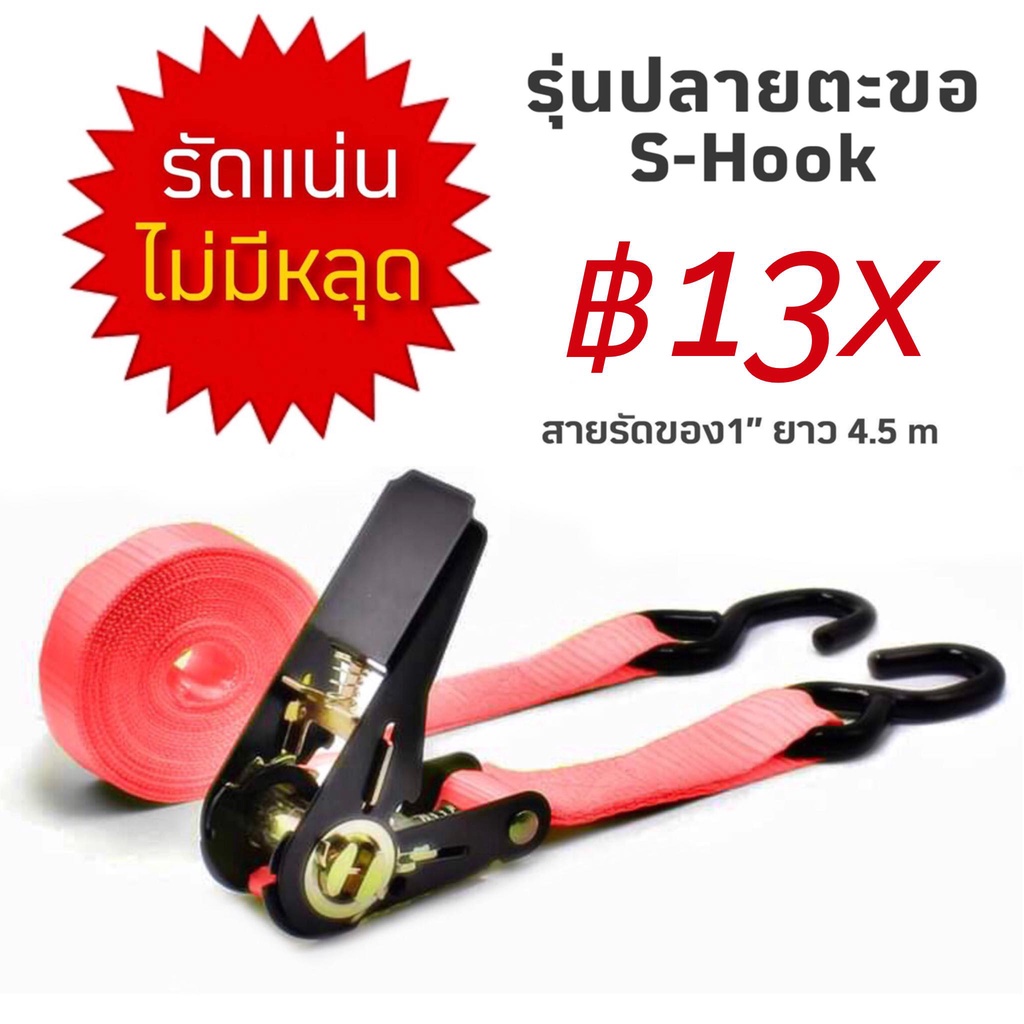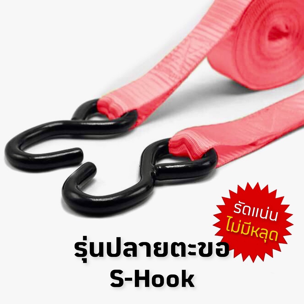 สายรัดของ สายรัดมอเตอร์ไซค์ สายรัดกล่องส่งอาหาร ขนาด1นิ้ว x ความยาว 4.5 เมตร (สีชมพู) รุ่นหัวล็อค ปลายตะขอ แข็งแรง