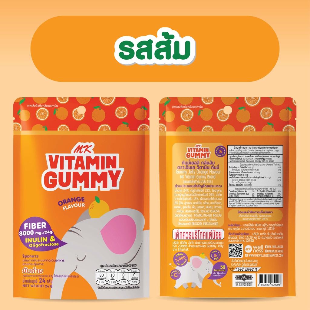 MK Vitamin Gummy วิตามินกัมมี่ ส้ม 1 ซอง ขนม เยลลี่ อร่อย มีไฟเบอร์ ช่วยระบบขับถ่าย