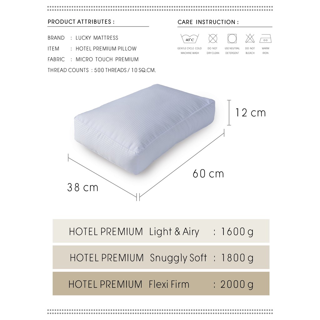 LUCKY mattress หมอนขนห่านเทียม Hotel Premium หมอนโรงแรมความนุ่มระดับห้าดาว นุ่มหลับสบายไม่ปวดต้นคอ