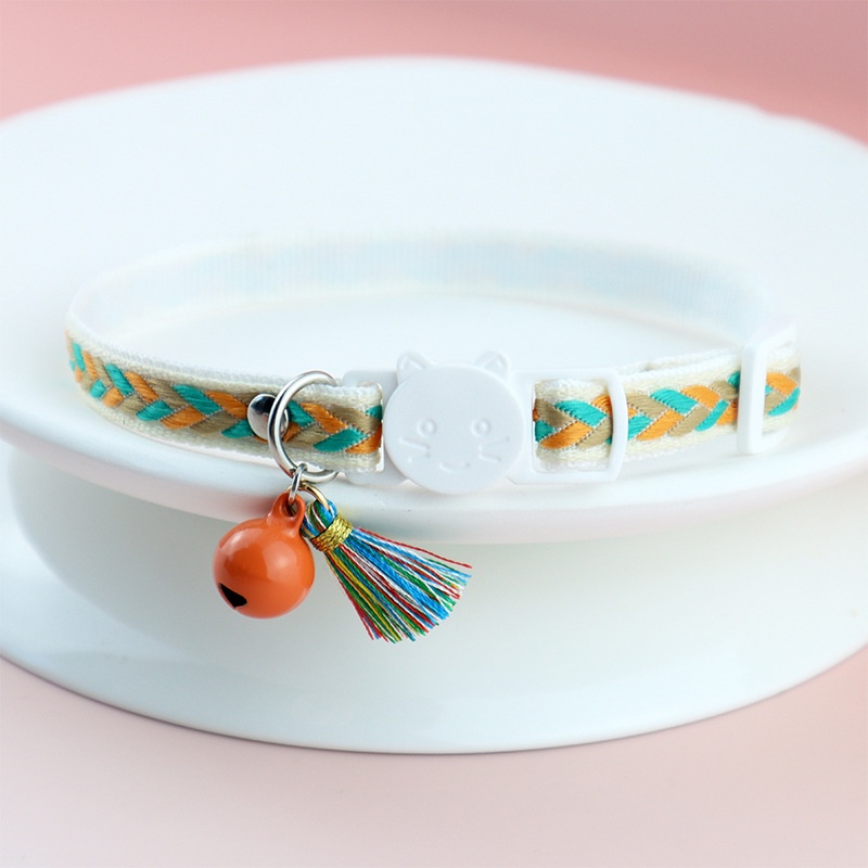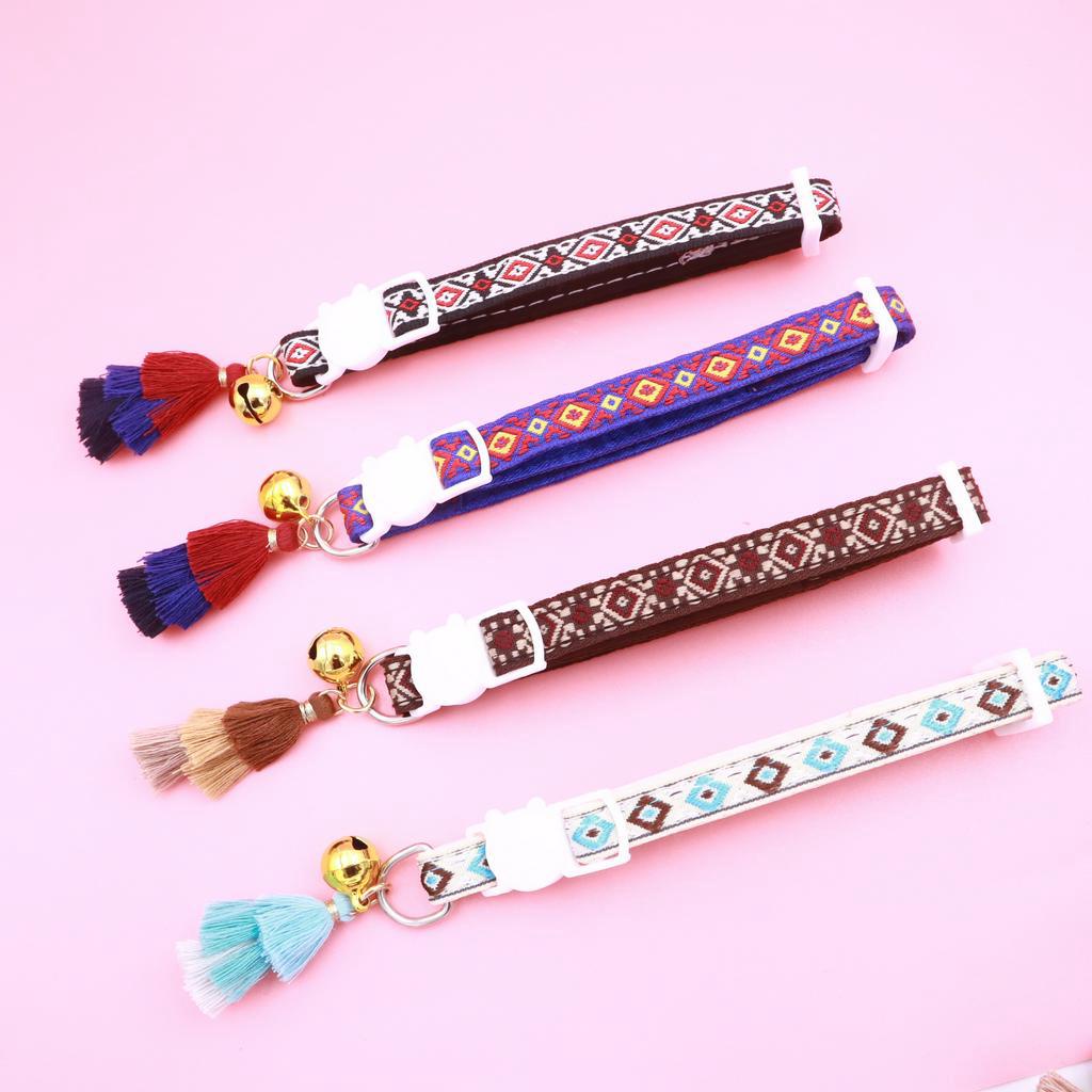 ปลอกคอ พร้อมกระดิ่ง หลากสี สไตล์ประจําชาติ สําหรับสัตว์เลี้ยง สุนัข แมว