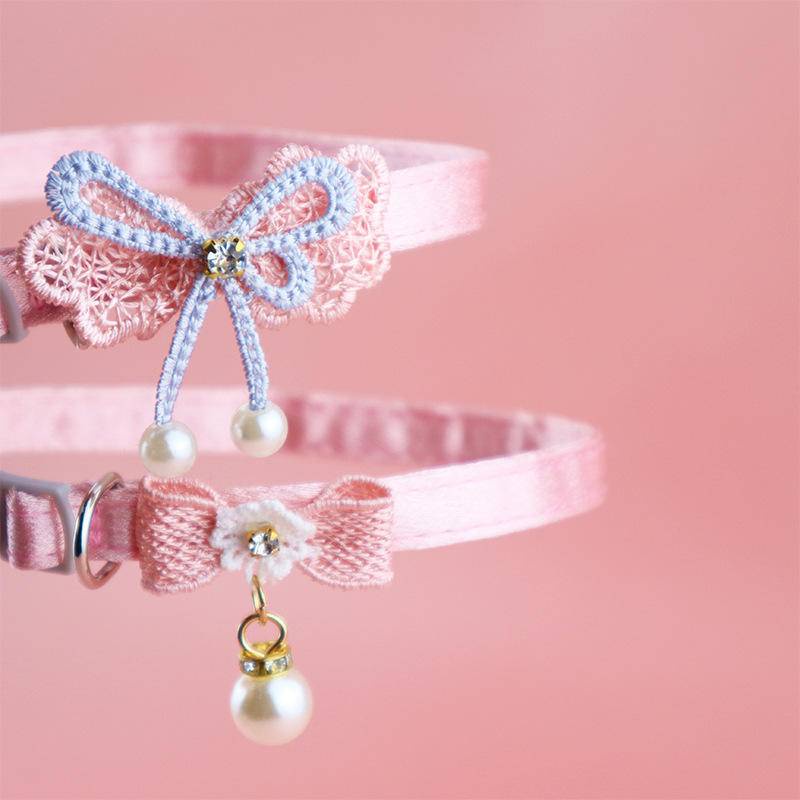 สัตว ์ เลี ้ ยงแมวปลอกคอนางฟ ้ าแป ้ งลูกไม ้ โบว ์ มุกแขวนลูกปัดแมวปลอกคอกระดิ ่ งอุปกรณ ์ สัตว ์ เลี ้ ยงงานแต ่ งงานสร ้ อยคอคออุปกรณ ์ เสริมสําหรับลูกสุนัข