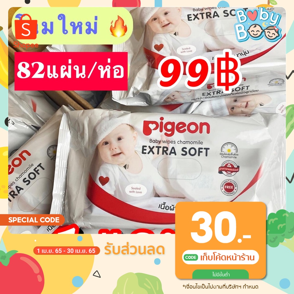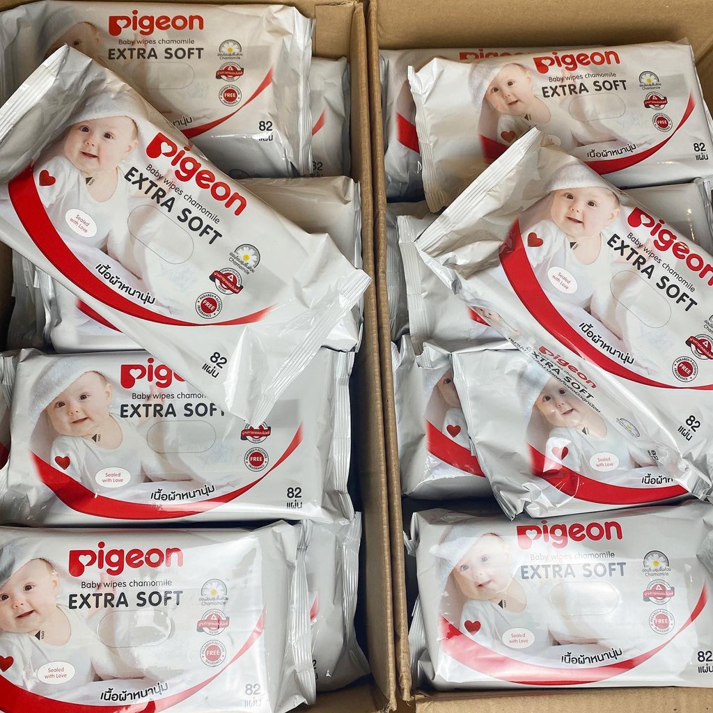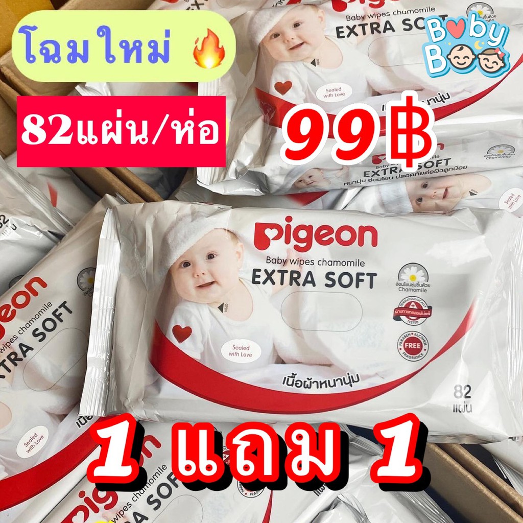 เก็บโค้ดหน้าร้านลด30.-1แถม1PigeonBabyWipesทิชชู่เปียกสำหรับเด็กพีเจ้น ผ้าเช็ดทำความสะอาดพกพากระดาษเปียกเด็ก82ชิ้น/ห่อ